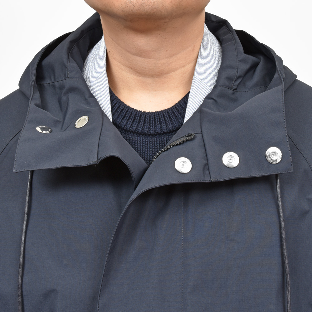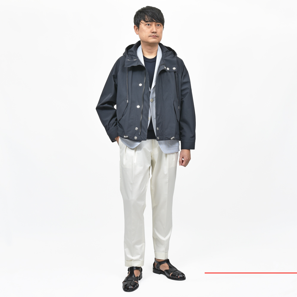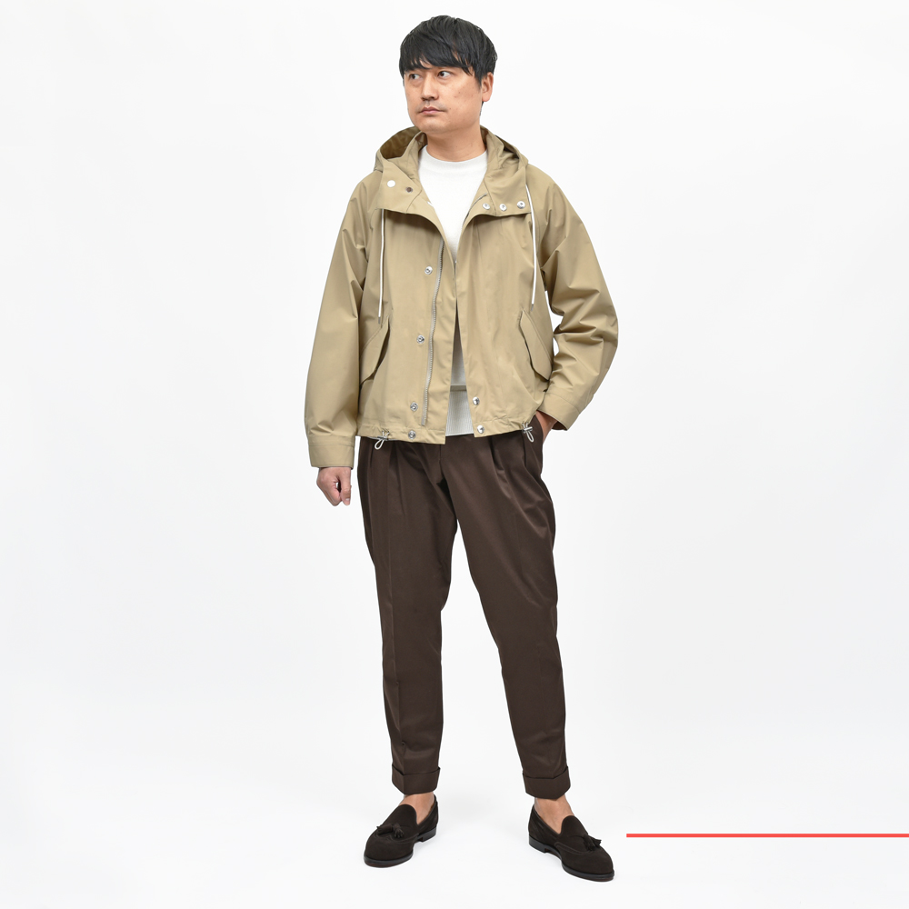 マウンテンパーカ型のアイテムでありRAINTECの生地を採用しているのでアウトドアイメージの強い一着ではあります、ですが実際に着てみると非常にモダンなムードで着地してくれるんです。ばさっと気兼ねなく羽織れるカジュアルアウターをお探しであればまずこちらを第一候補にしてみてはいかがでしょう。