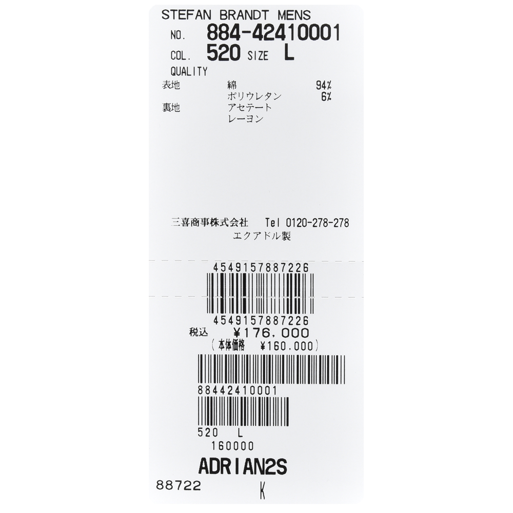 コットンスムースジャージ2Bジャケット ADRIAN/884-42410001