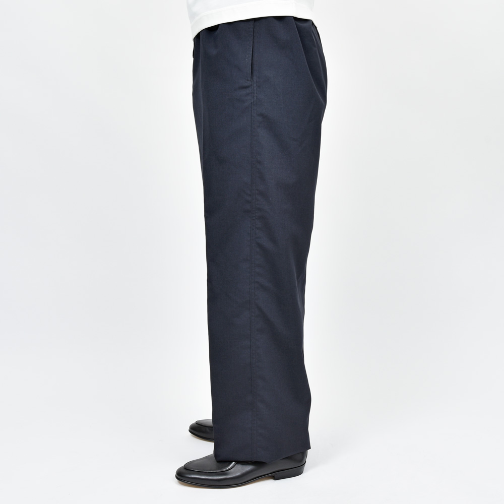 生地はポリエステルの滑らかなタイプライターを採用することで軽やかな印象に、ワイドながらも重たく見えないというのもポイント。春夏において品よく軽やかであるということは必須項目、それをしっかり満たしてくれています。