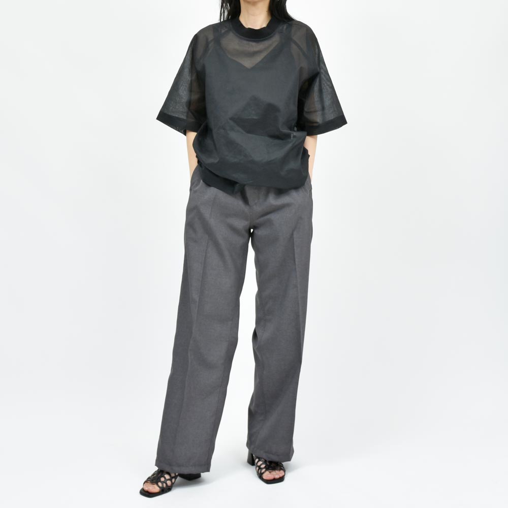 生地はポリエステルの滑らかなタイプライターを採用することで軽やかな印象に、ワイドながらも重たく見えないというのもポイント。春夏において品よく軽やかであるということは必須項目、それをしっかり満たしてくれています。