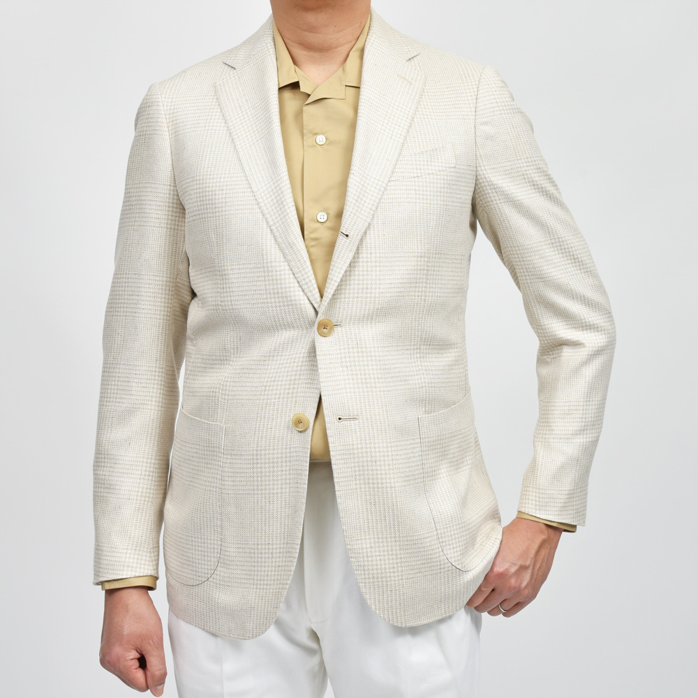 グレンチェックですがコントラストが控えめで、柄物ですが押し出しが強くないのでシルクツィードのとてもマッチしていますね。