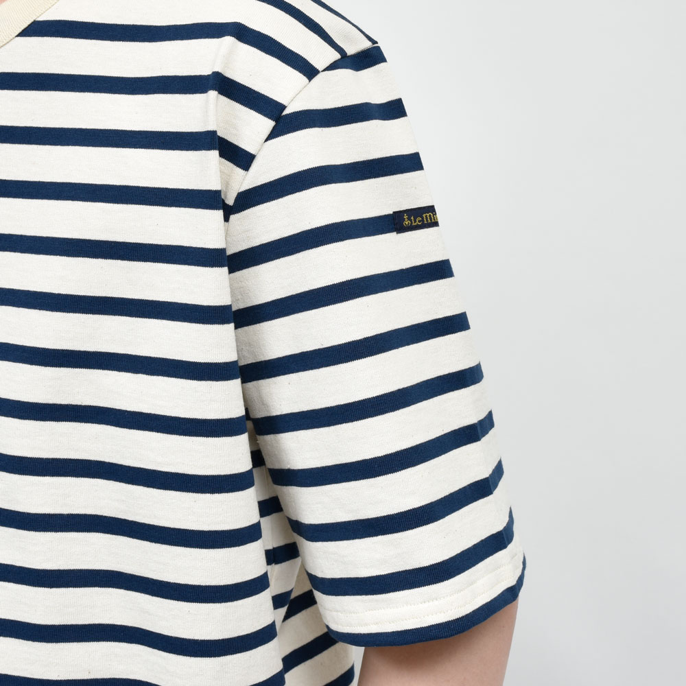 この手のデザインはさまざまなブランドで提案されていますが、生地のタッチやボーダーのピッチで老舗の素朴さを表現しつつ、左腕のブランドロゴで控えめな差別化がなされています。
