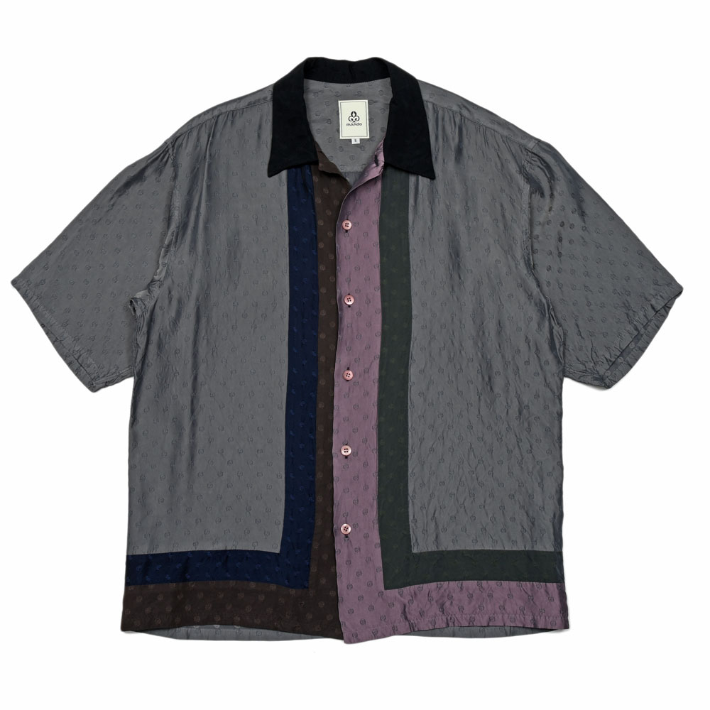 mando(マンド)のサマーシーズンといえば柄物の半袖シャツです、これはもう外すことができない風物詩的な存在です。キュプラレーヨンを採用したとろみのある生地に、ヴィンテージライクなスクエアプリントを散りばめたような一着。