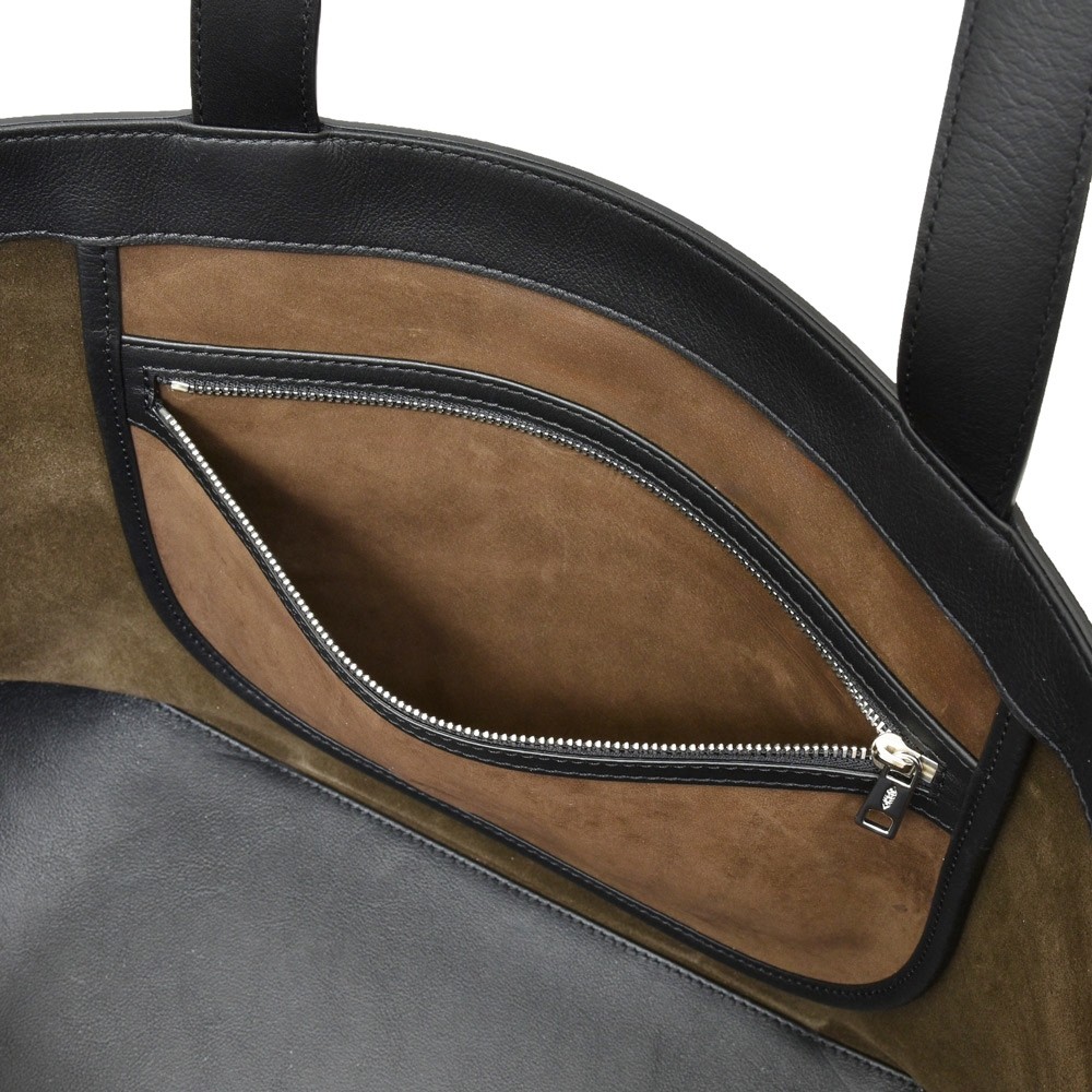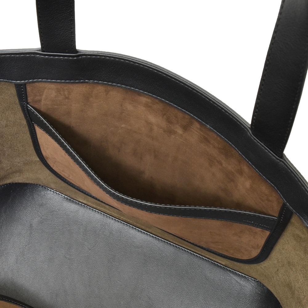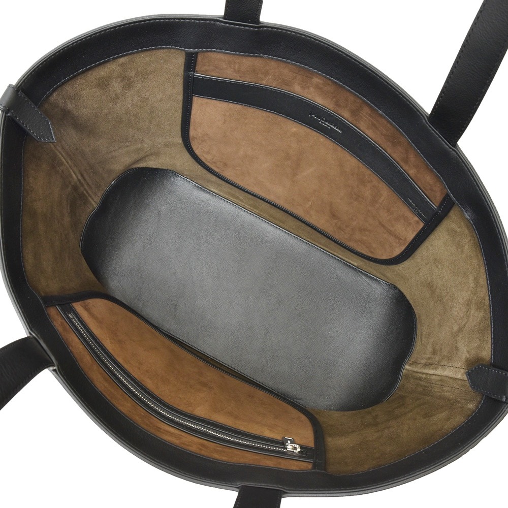 ダークブラウンボディのヌバックと、表革のブラックのコンビネーションも上品です。トリミング切り替えデザインはトートでは定番ですが、このクオリティで整っているものはそう多くはないと思いますので、是非一度手に持って合わせて頂きたいですね。