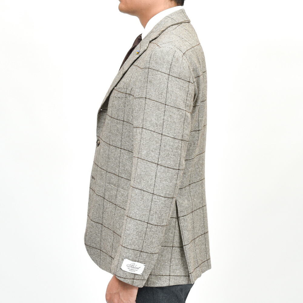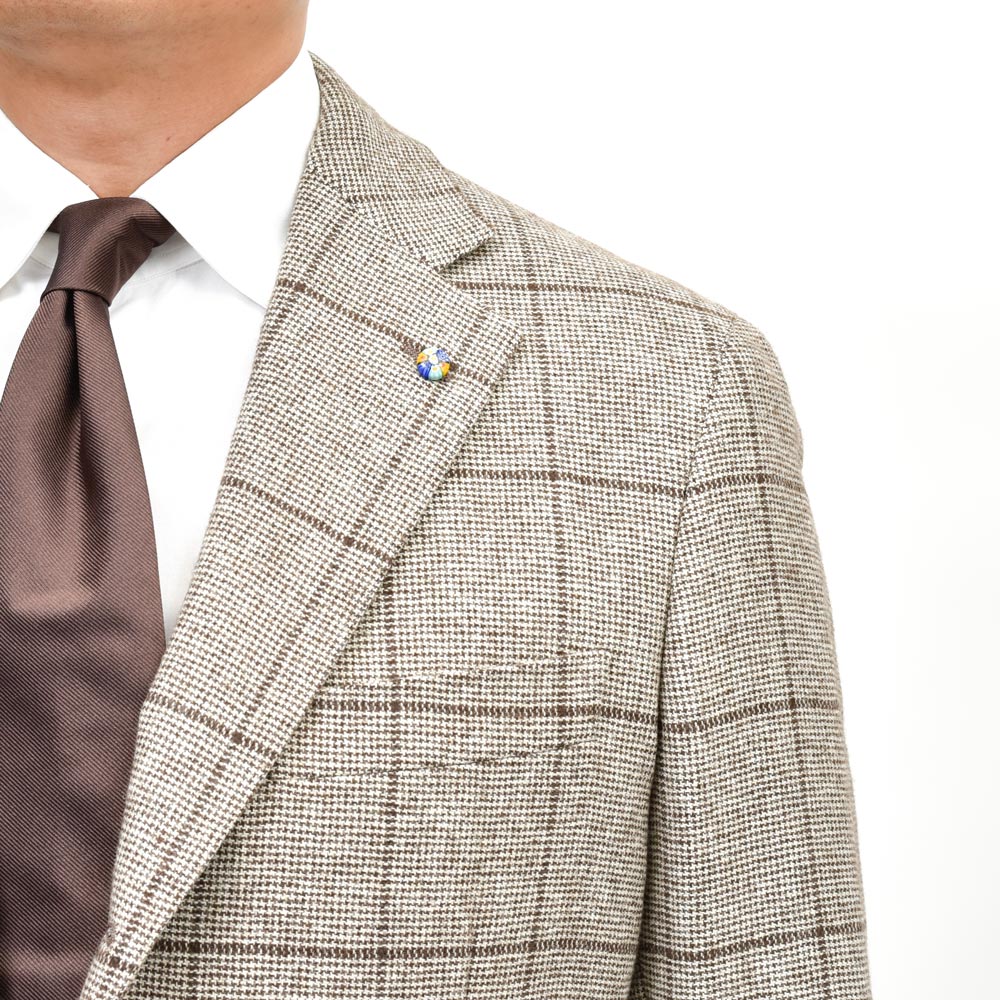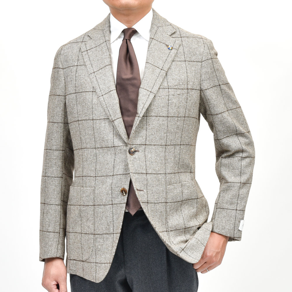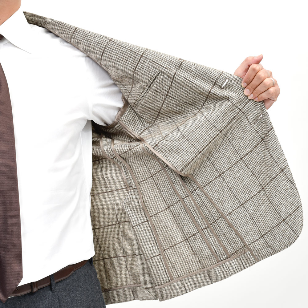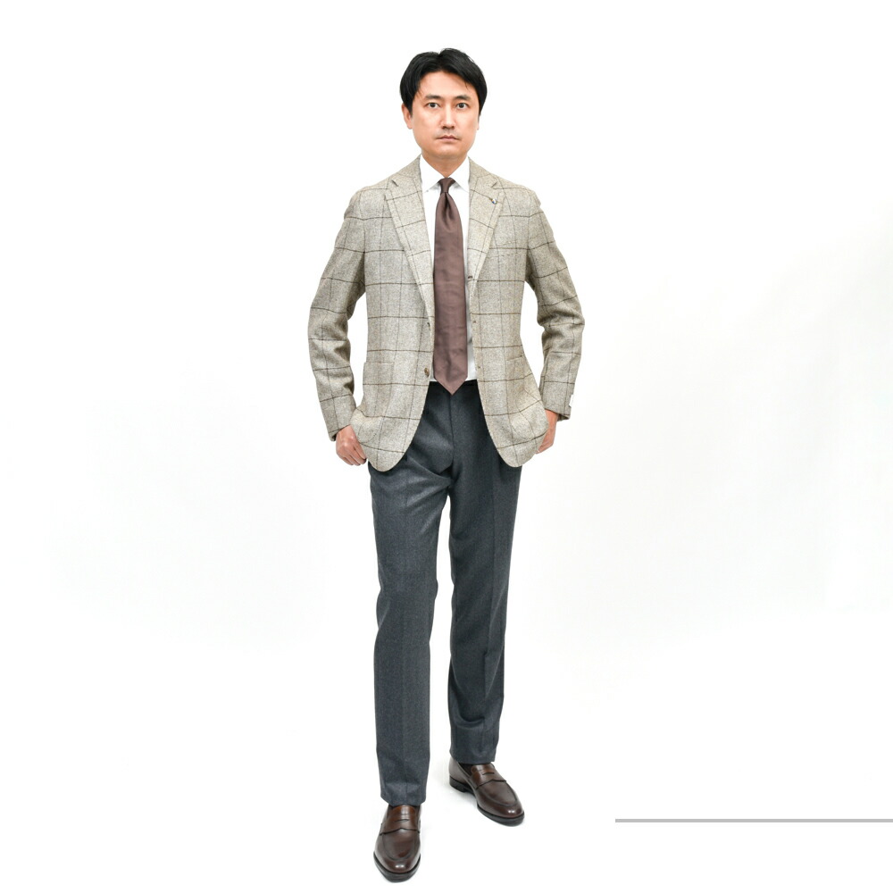 ベージュを基調にした優しいトーンにウインドーペーンの柄が映え、上品で落ち着いた印象で柔らかな雰囲気でお召しいただける一着です。