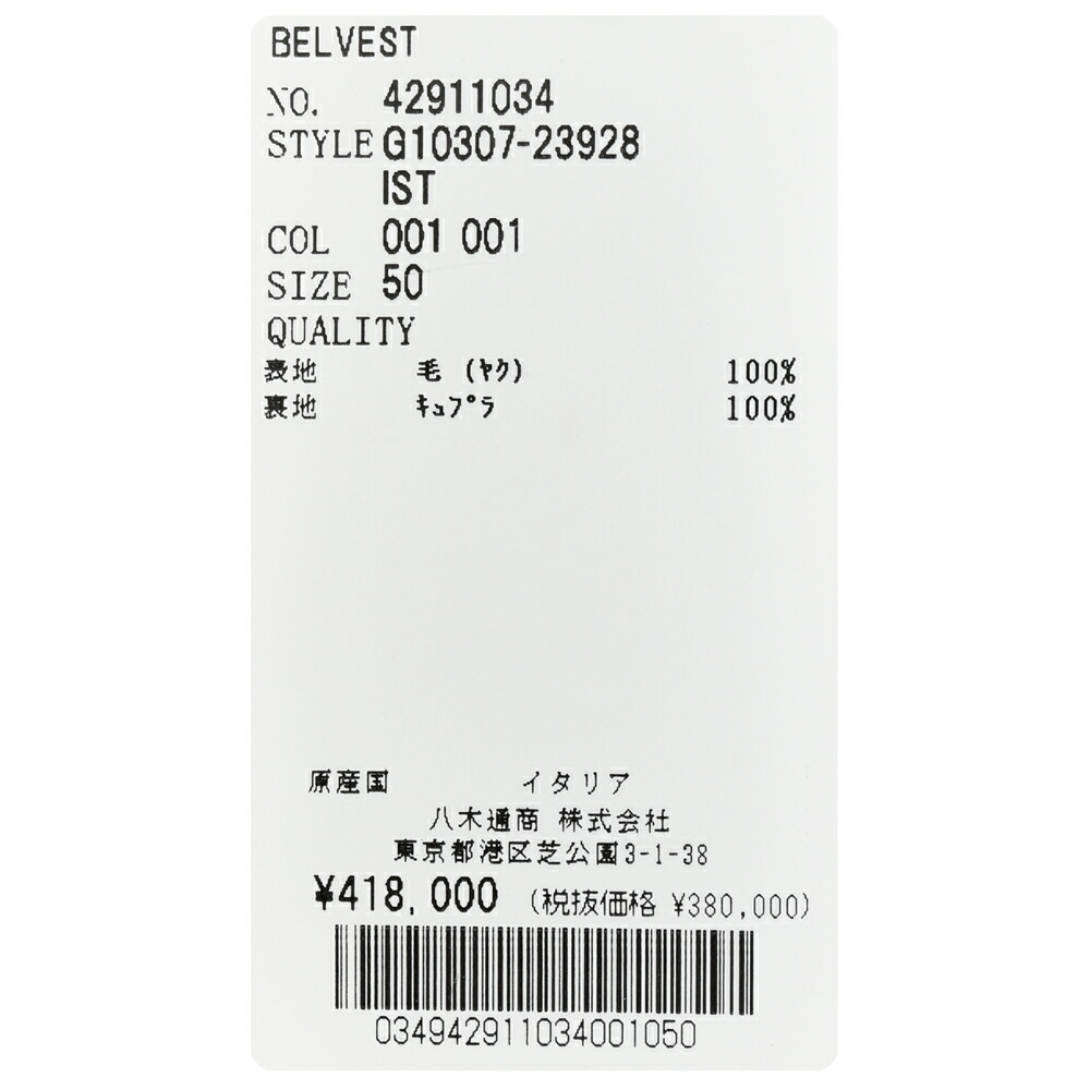 カシミアに匹敵する繊維の細さであり、ぬくもりと軽やかさが、BELVESTのJACKET IN THE BOXの仕立てと絶妙にマッチしています。