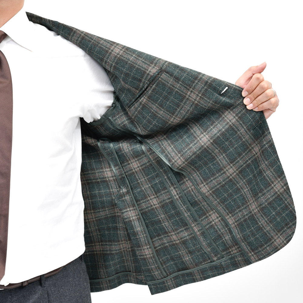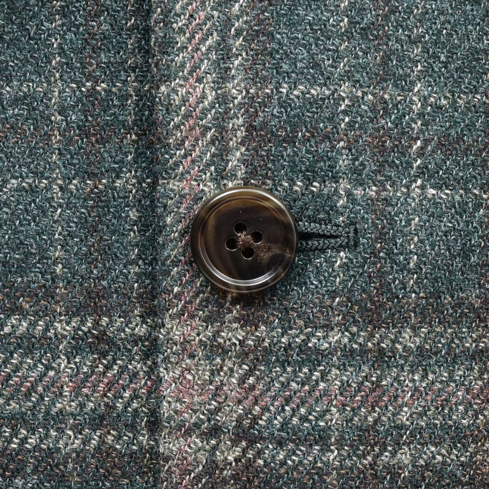 なかなかマニアックな一着とは思いますが、オーダー以外では出回りにくいタイプですね。グリーンを基調としたアーシーなスタイルでも都会的に見せてくれるジャケットだと思います。