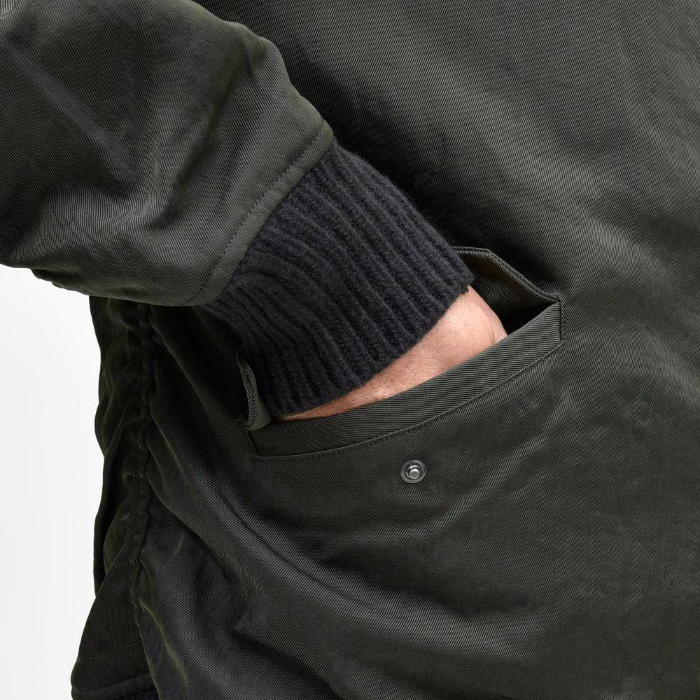 定番モデルにして毎シーズン人気の高いMA-1タイプ。ナイロンを立体的に見せるギャザー使いがポイントで、他にはない手間隙が込められています。