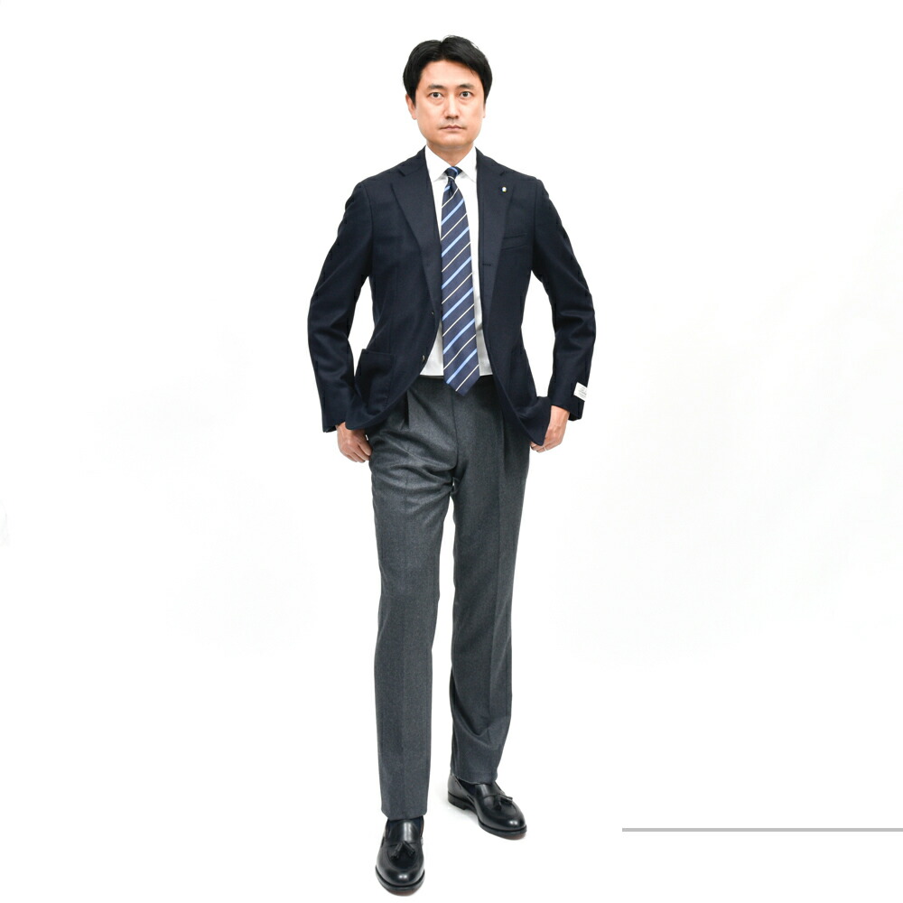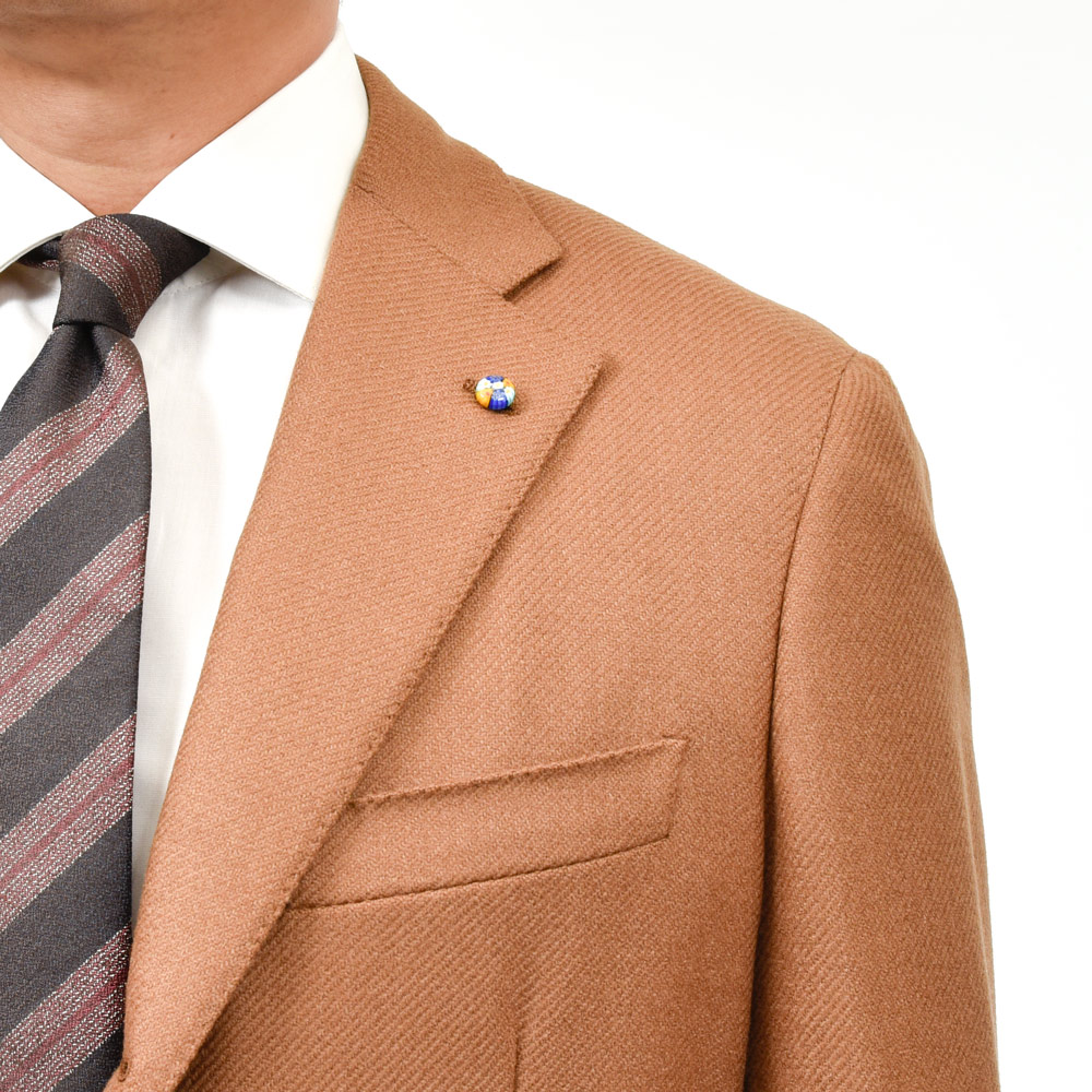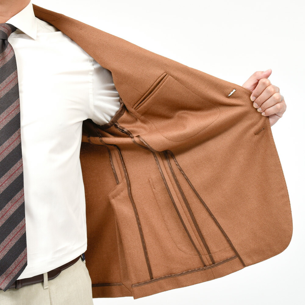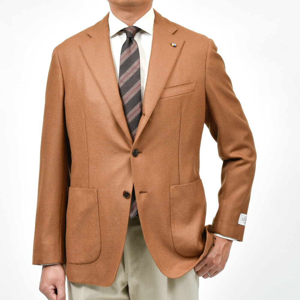 上質なウールにわずかにカシミヤをブレンドすることで、程よいコシと柔らかさを両立させた生地です。