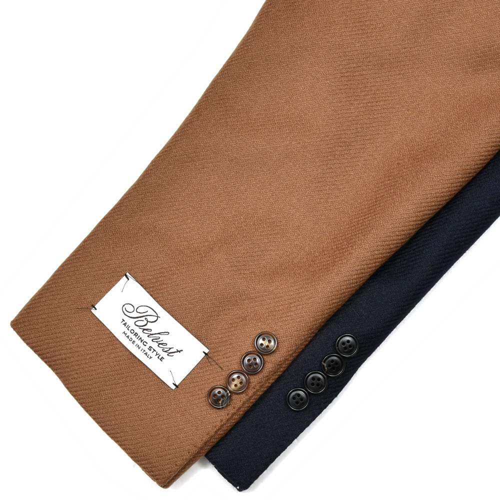 この生地クオリティを徹底して追求し、自社の仕立てに適合するものだけを選び続ける一貫性がBelvestの魅力の一つですね。