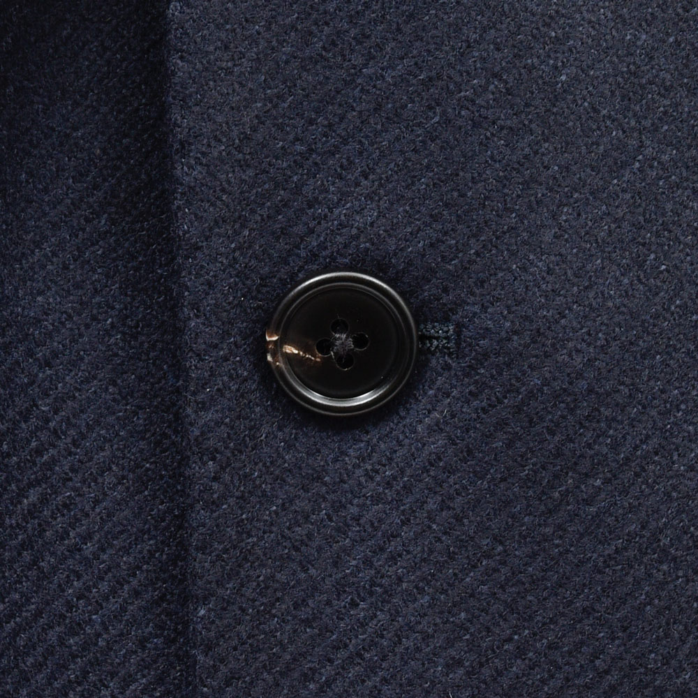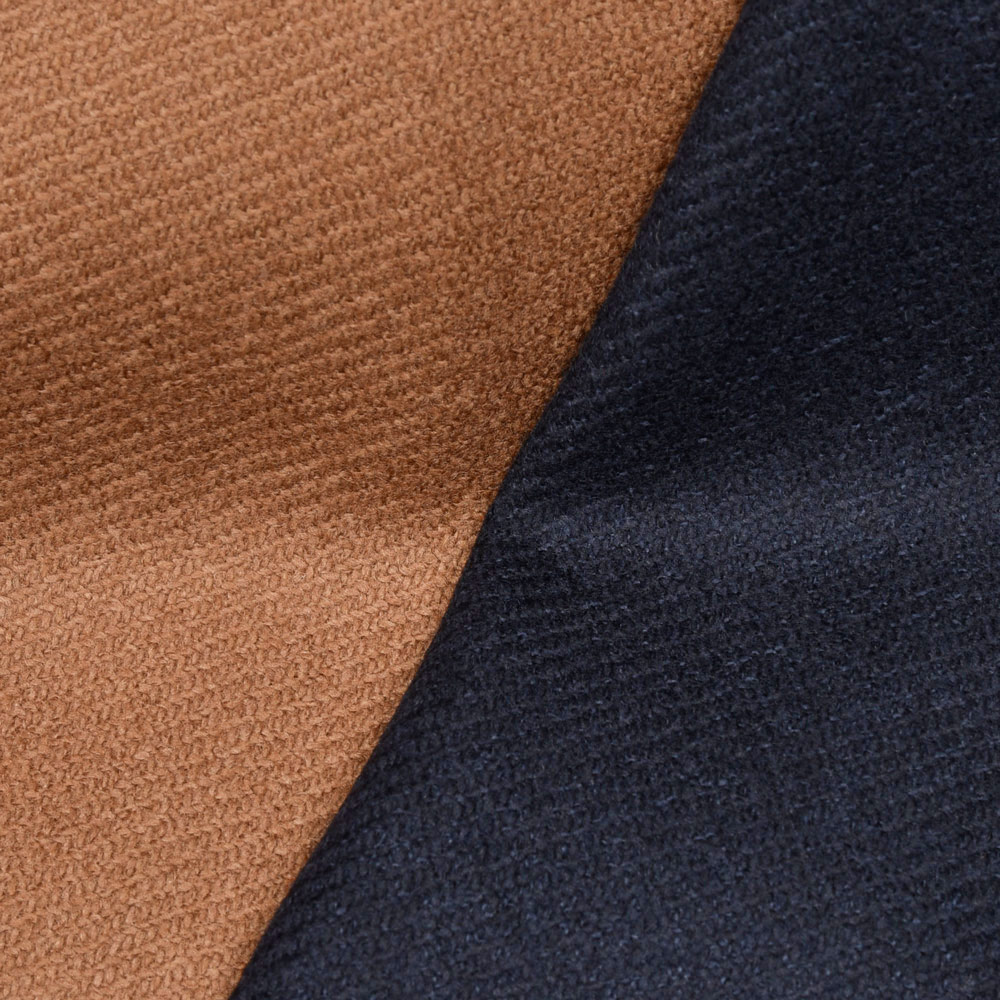 ダイアゴナルの織りによって生まれる立体的な陰影が、ネイビーとブラウンの奥行きをより一層際立たせています。