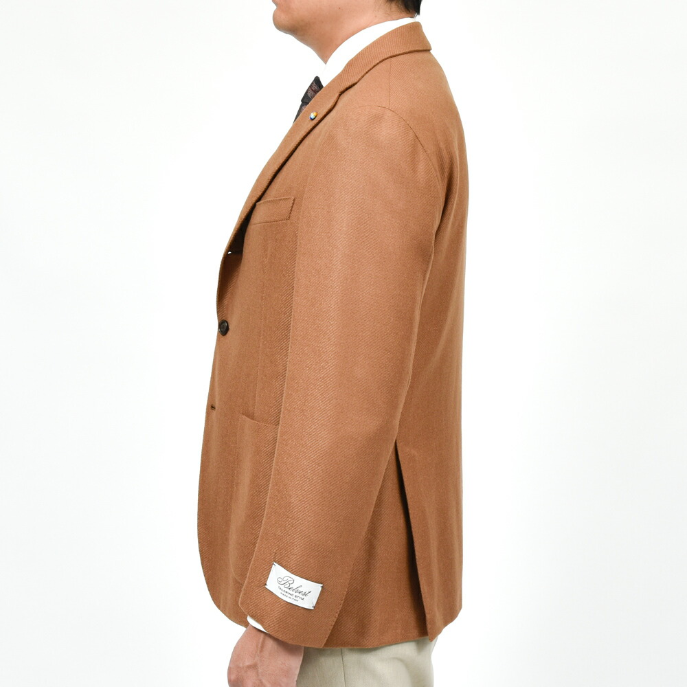 ウールカシミアのライトツィードですが、普通のブランドですとドライなタッチになるところ、Belvestは艶がありほんのりシルキーさも伴った上品なタッチになっています。