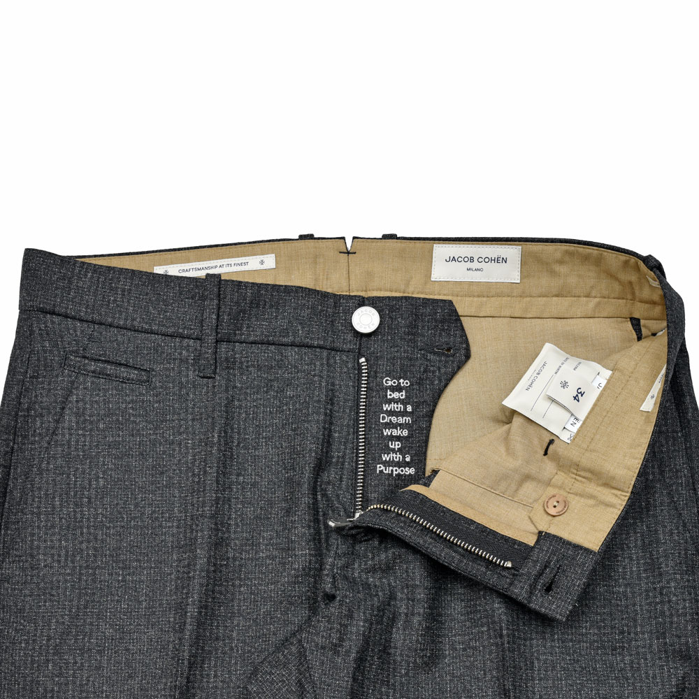 遠目からだとメランジにも見えなくはないチェック、カラーはチャコールグレーなので幅広いスタイルでお使い頂けるのではないかなと思います。