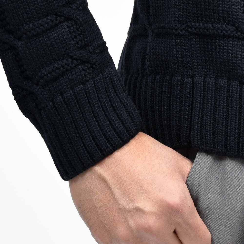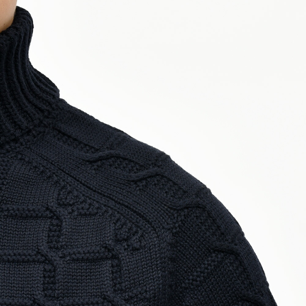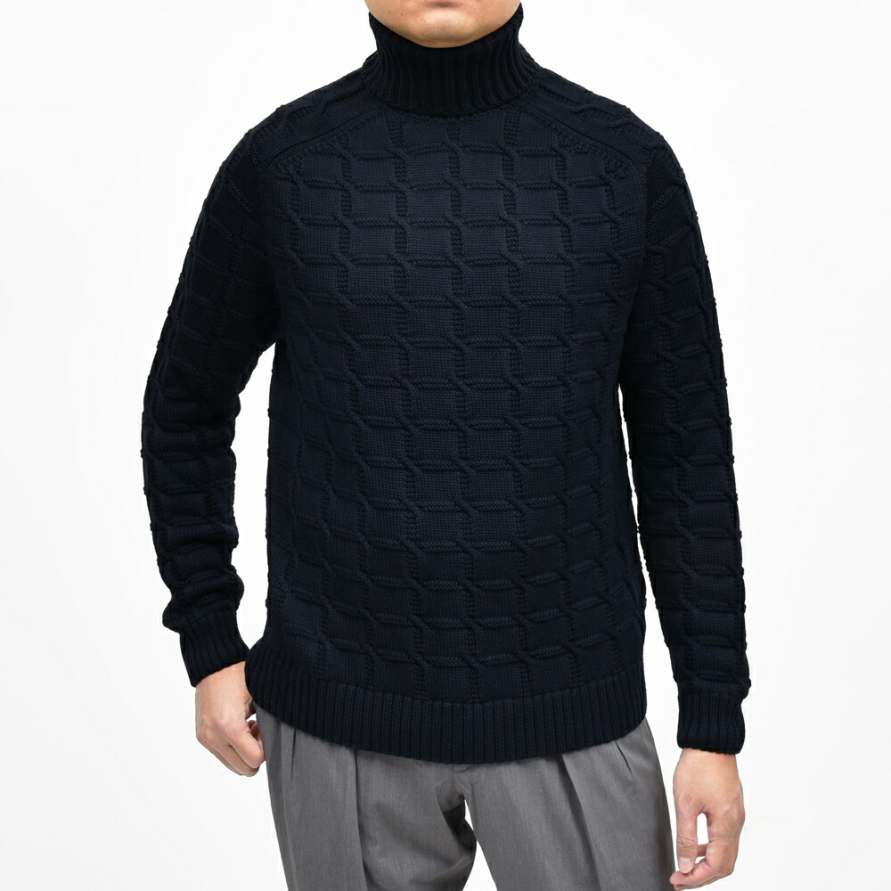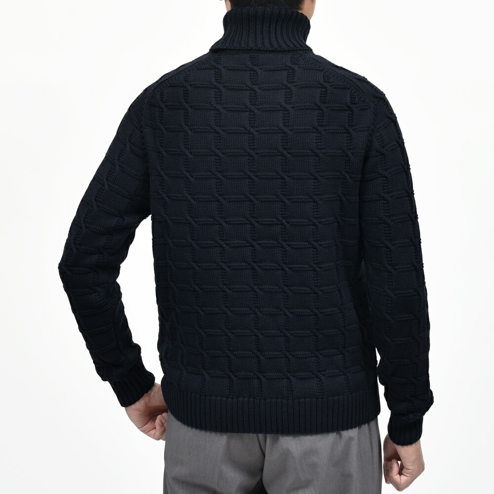 ZANONE(ザノーネ)らしい編地でチェックを表現しているタートルネックニットですが、ケーブル編みの意匠も少し取り入れられており、オリジナリティの伴った立体感が表現されています。