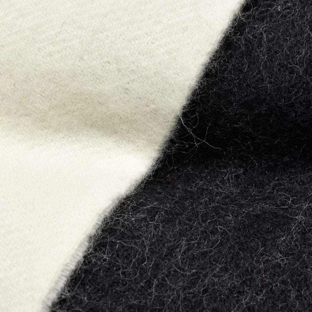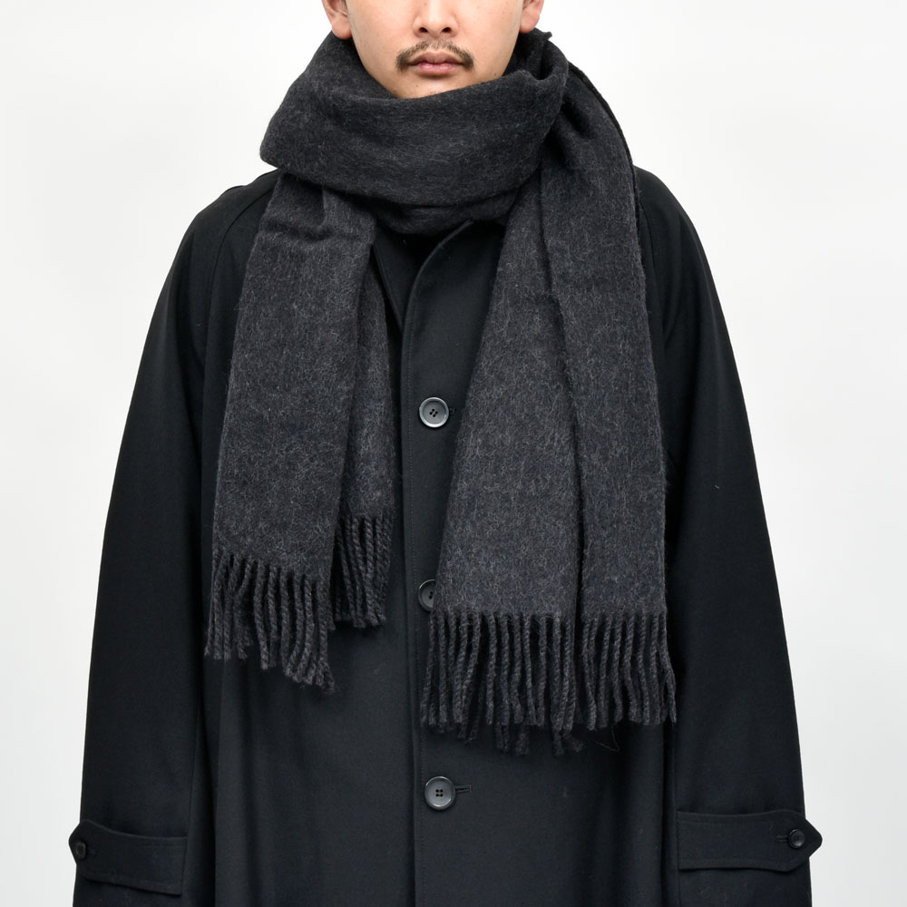 ウールを縮絨して膨らみを出すことで、ボリューム感をコントロール。巻いたときにいいバランスになってくれるものに。存在感がありつつ、デイリーに活躍してくれるストール、性別問わずお使いいただけるためパートナーとシェアしてもらうことが可能です。