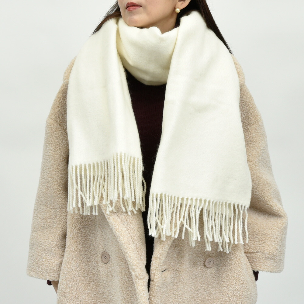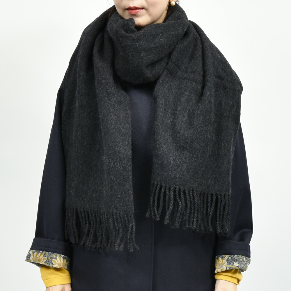 ふわりとしたウールのタッチがとても上品でウォーム感があり、50cm幅なので巻いた時も程良い感じです。大判と小判の間くらい、いわゆる中判という感じかと思いますが、アウターを選ばず巻くことが出来るので、一番使い勝手が良いサイズ感ではないでしょうか。