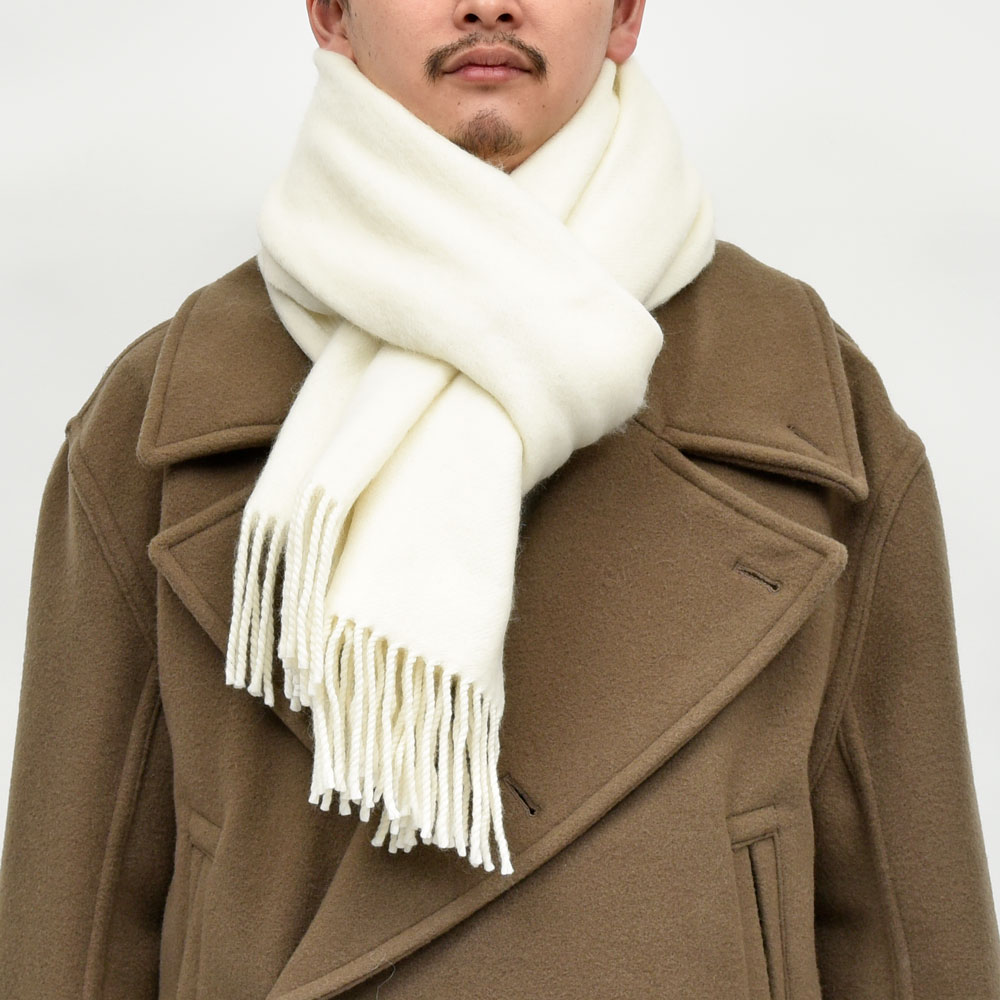 カシミアの艶やかさや高級感とは違う、ウールならではの温かみがある一本です。