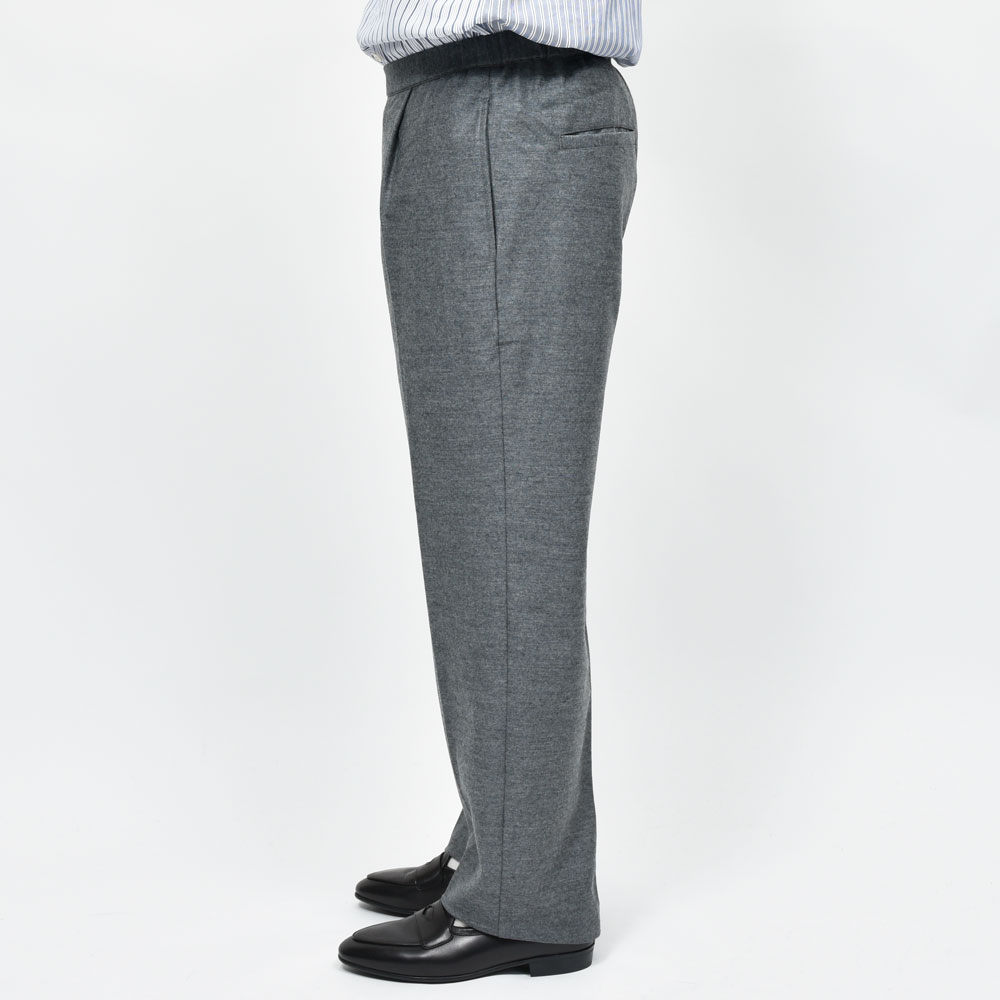 ウールナイロンフランネルの生地を採用することによって、洗練されたムードを演出しつつ、適度に力が抜けたスタイルを作ることができる一本となっています。