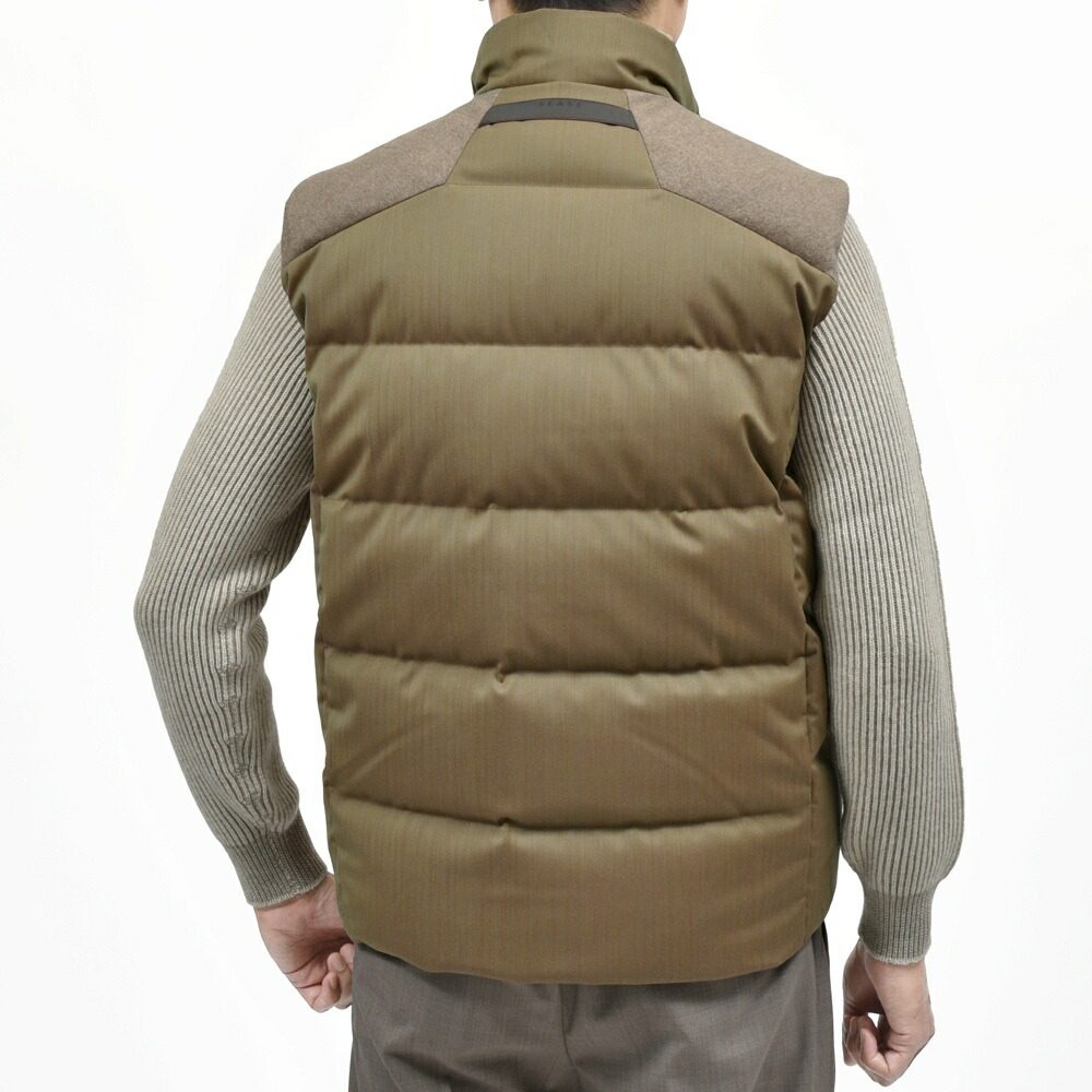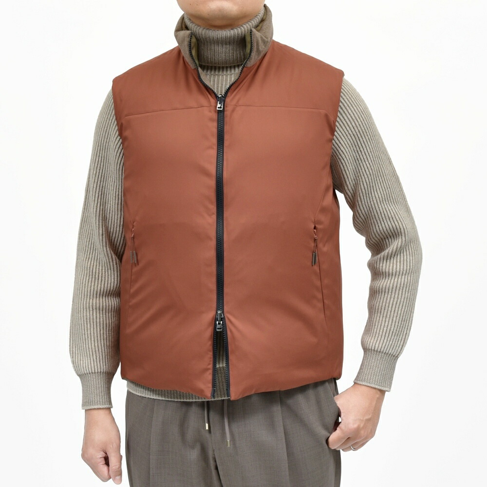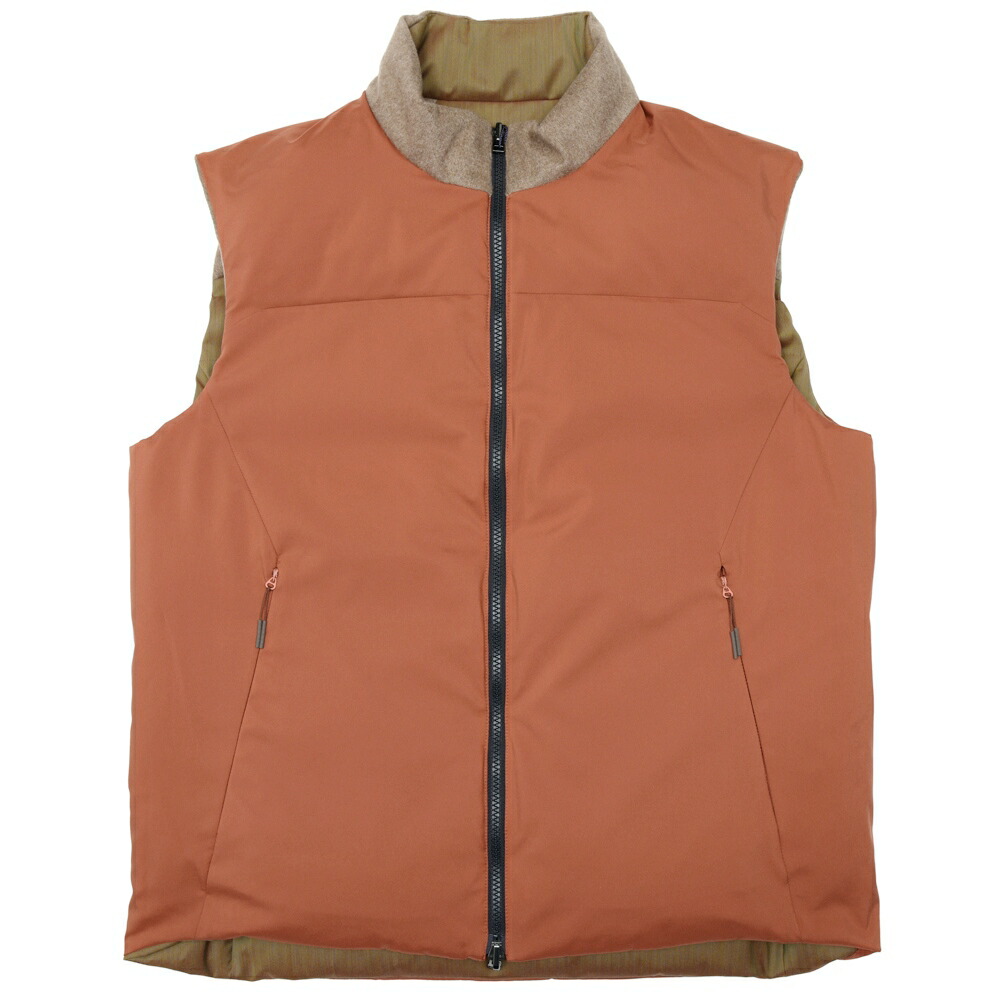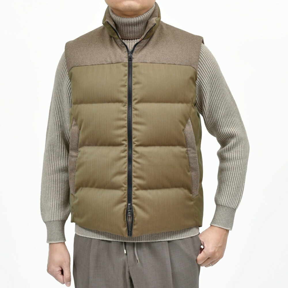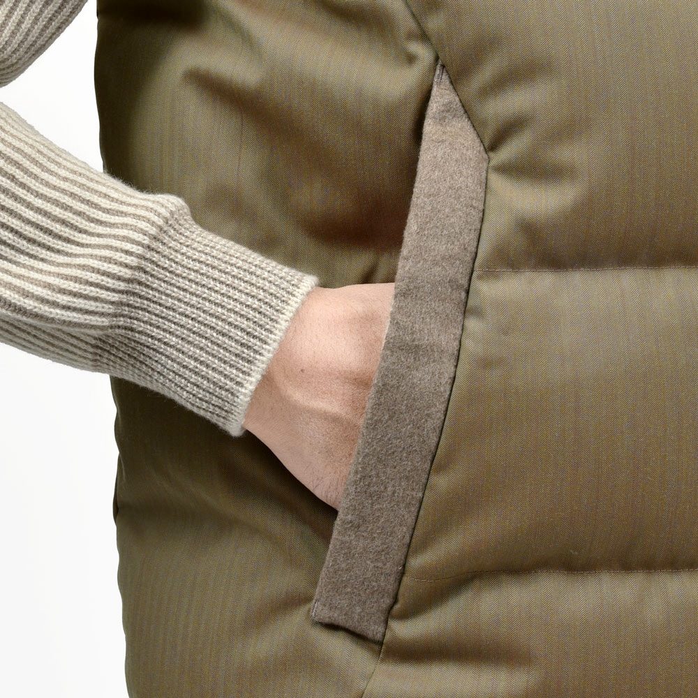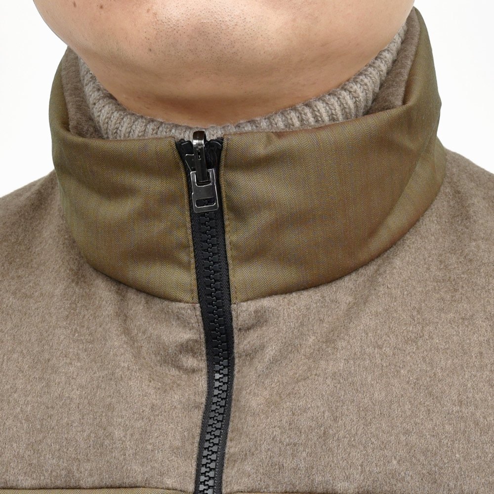 FEATHER VEST REVERSIBLE ウールナイロンヘリンボーンソラーロ×カシミアフランネルダウンベスト SE252UAJV045TN137 14056006039