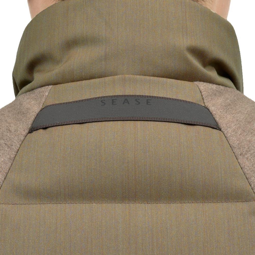 SEASE(シーズ)が用いる代表的なファブリックがヘリンボーンのソラーロ生地でして、ドレス由来、サルト由来のエレガンスをスポーツ・アクディブシーンでの着用に耐えうるクオリティに昇華したアイテムが得意分野になります。