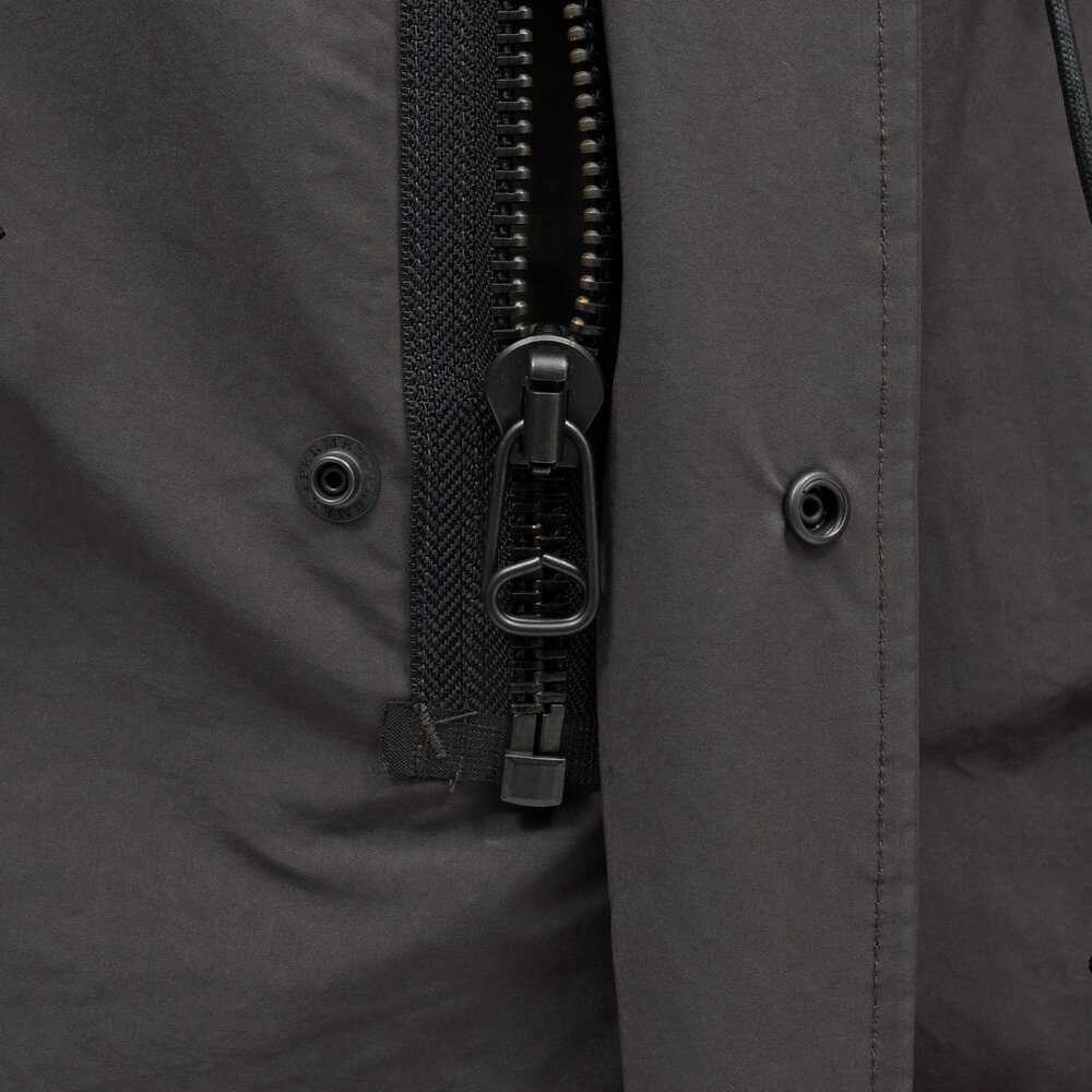今世の中に多く存在しているモッズコートはたっぷりとしたシルエットのものが多いと思いますが、こちらはそこまで大げさにゆとりを出さず、全体的に程良い塩梅に整えられています。