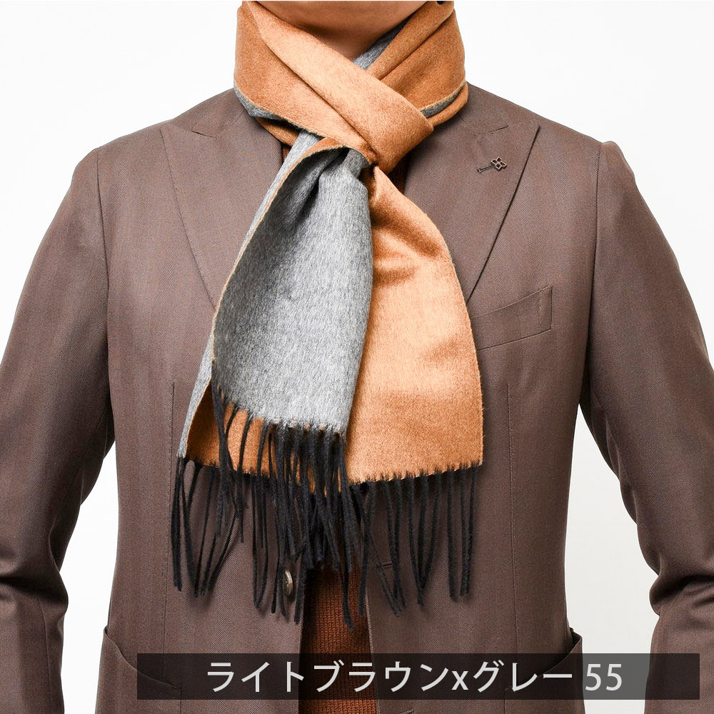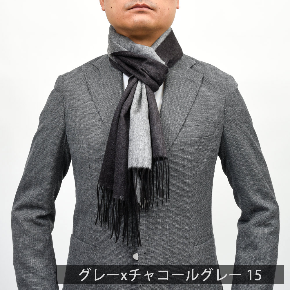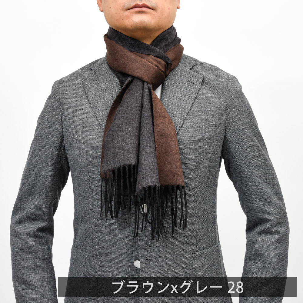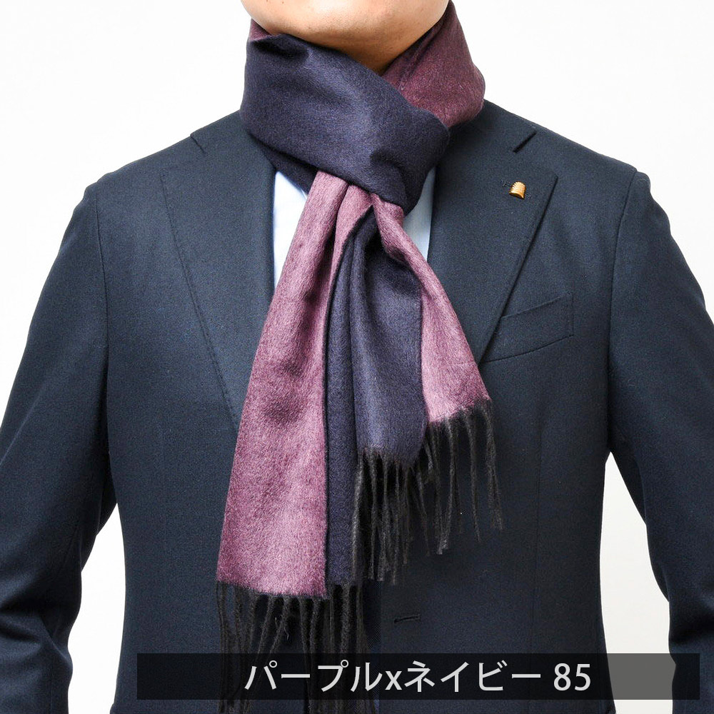 お馴染みのダブルフェイスマフラー、シルクがミックスされているので艶やかなタッチになっており、カシミアやウールとは違った色気のある発色が魅力です。