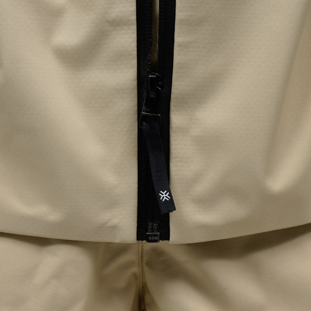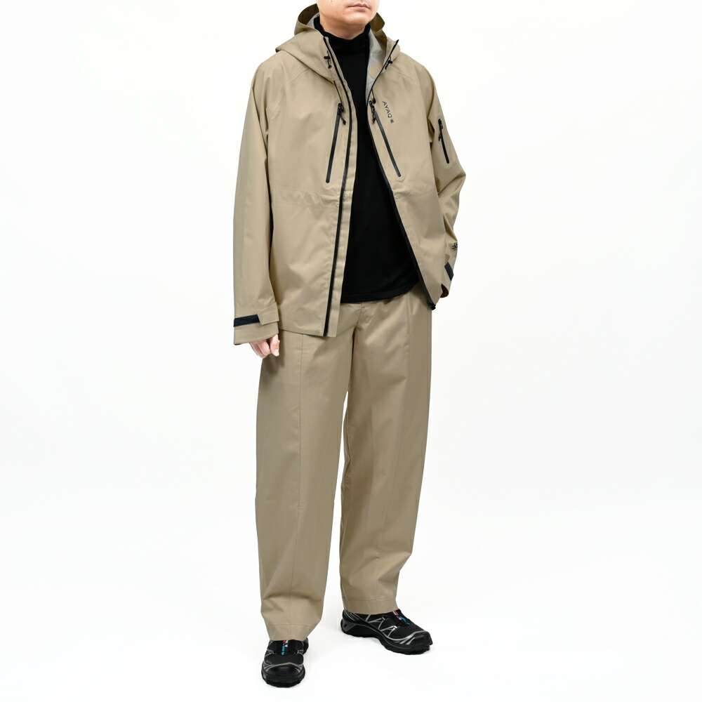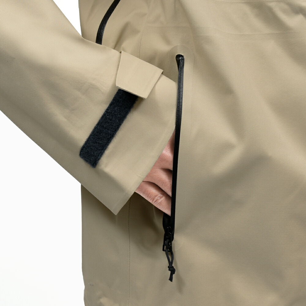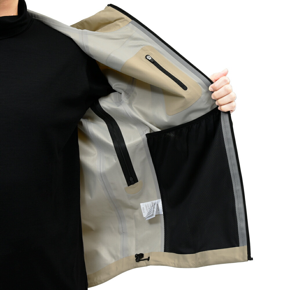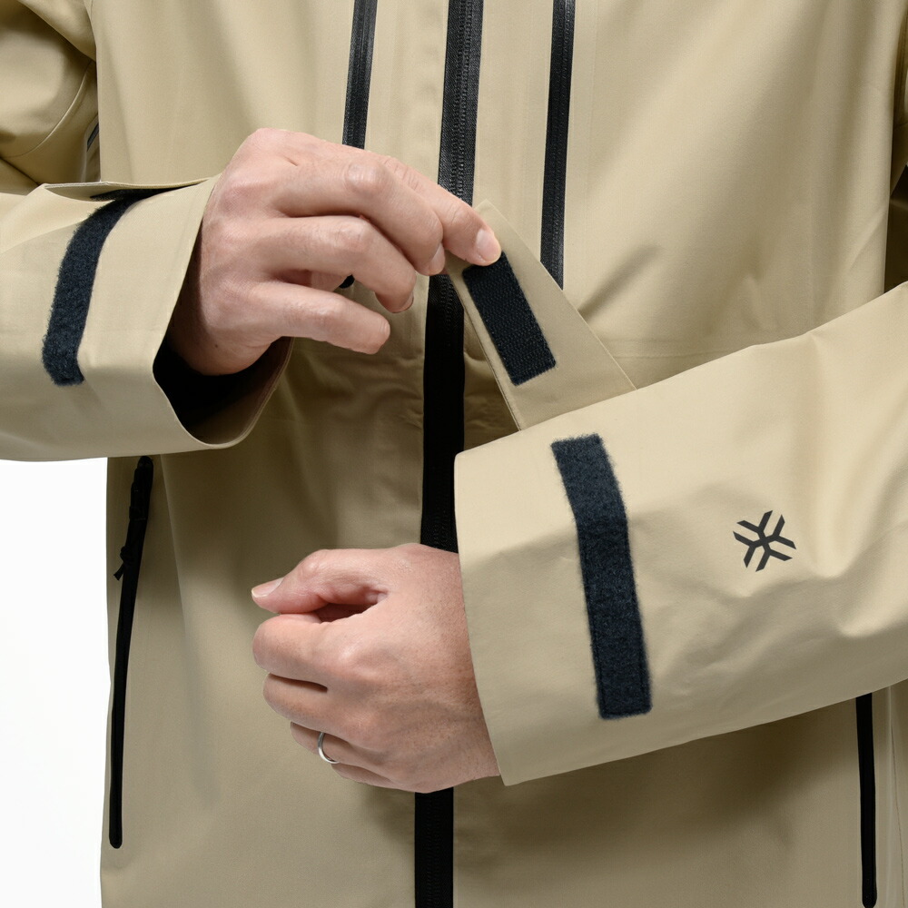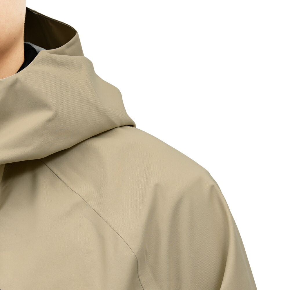 3レイヤーですが生地が非常にしなやかで柔らかく、着ていても張りを感じない素晴らしい生地ですね。もちろん軽いですし、透湿防水なので思った以上に暖かく、熱がこもれば脇下のベンチレーションで放出できるので、デザインと機能性どちらも素晴らしいと思います。