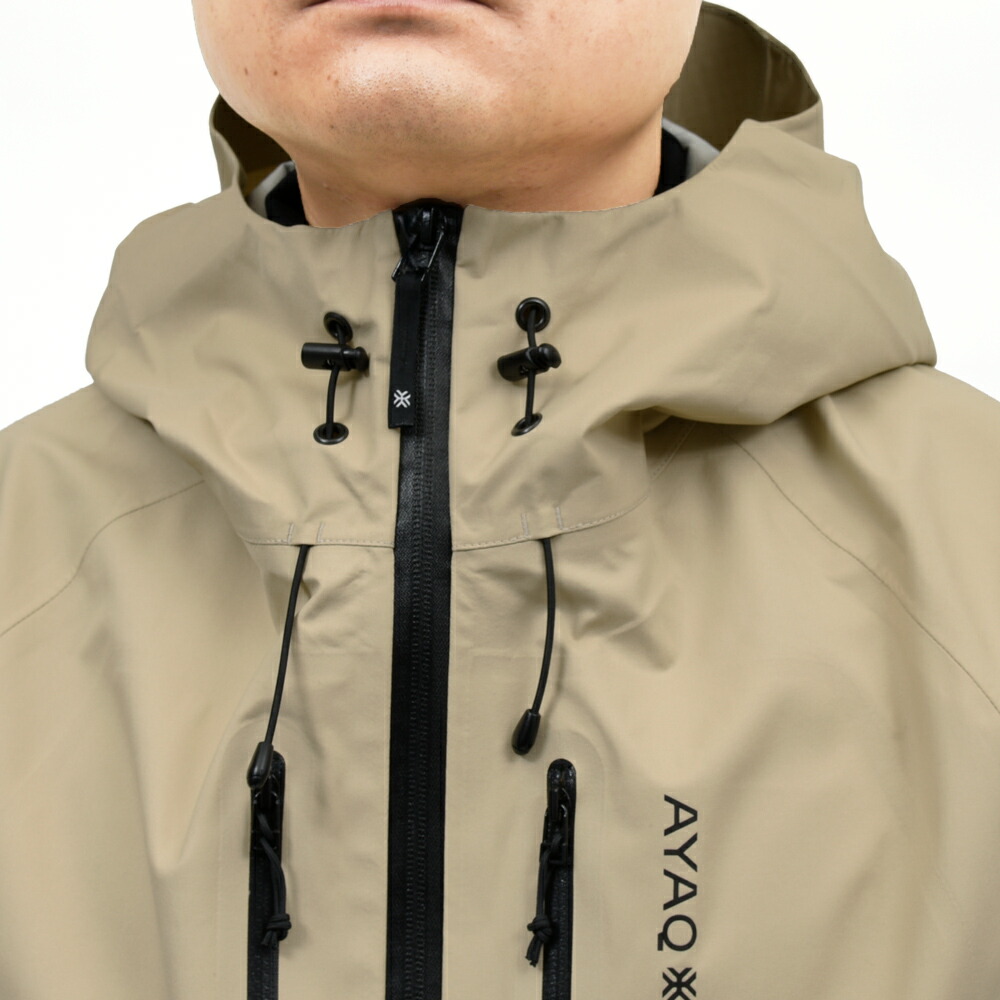 AYAQ(アヤック)が誇るスキーツーリング用のアウターウェアLONAKは3層構造の透湿防水ファブリックが用いられており、エクストリームなシーンでの使用を想定しつつ、タウンユースにも転用できるファッション性を備えた一着です。