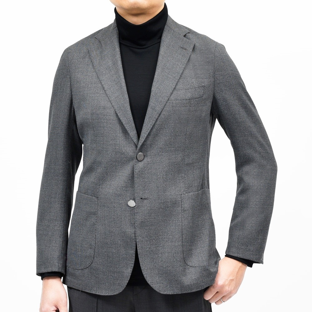 通年着られるウールホップサックの2Bジャケット。近年ライトジャケット仕立てのホップサックに需要が高まっています。