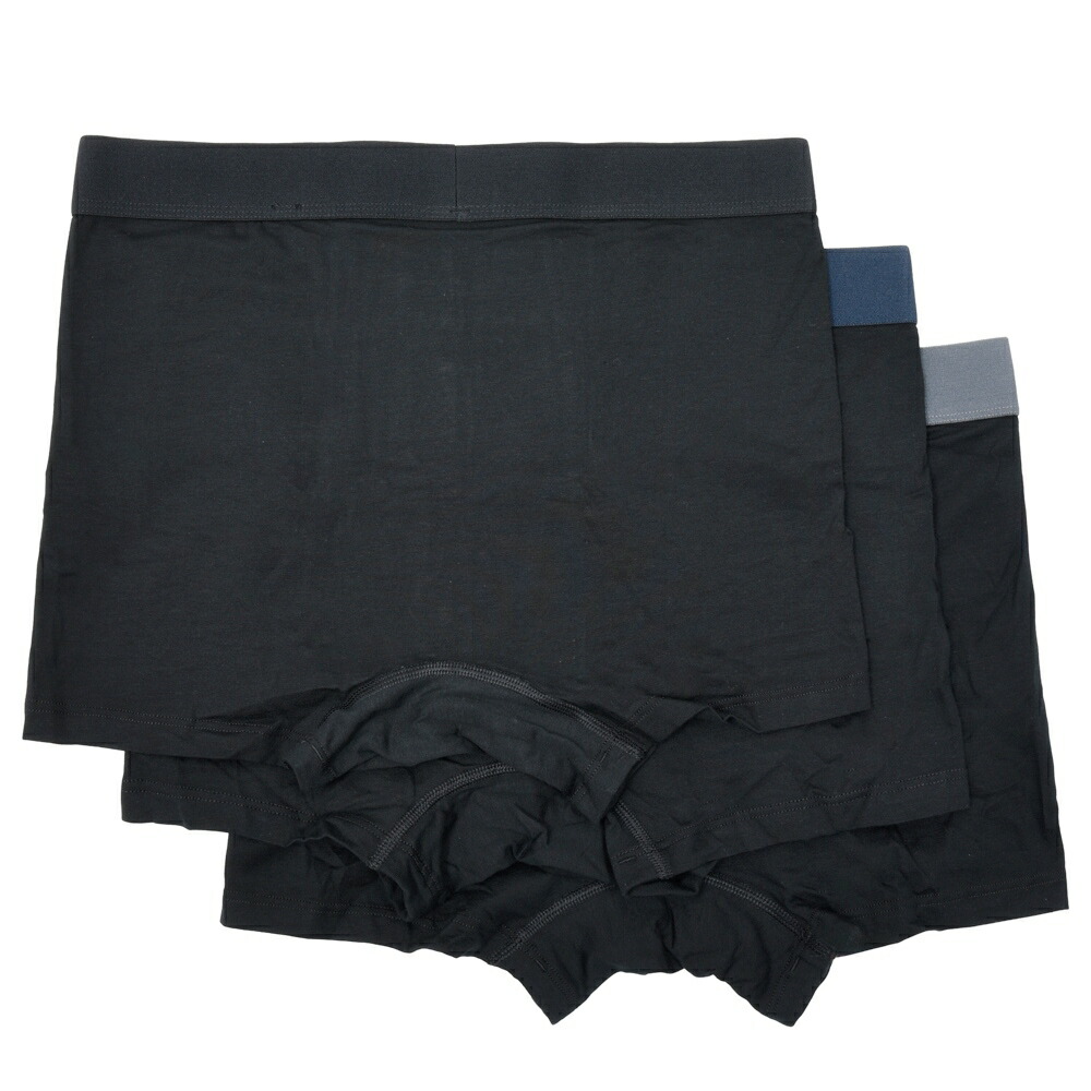 オーガニックコットンを95%用い、5%のエラスタンでストレッチ性を確保したボクサーパンツタイプのこちら、3セットになっておりウエストゴムバンドのみ配色になり、本体部分は全てブラックになります。