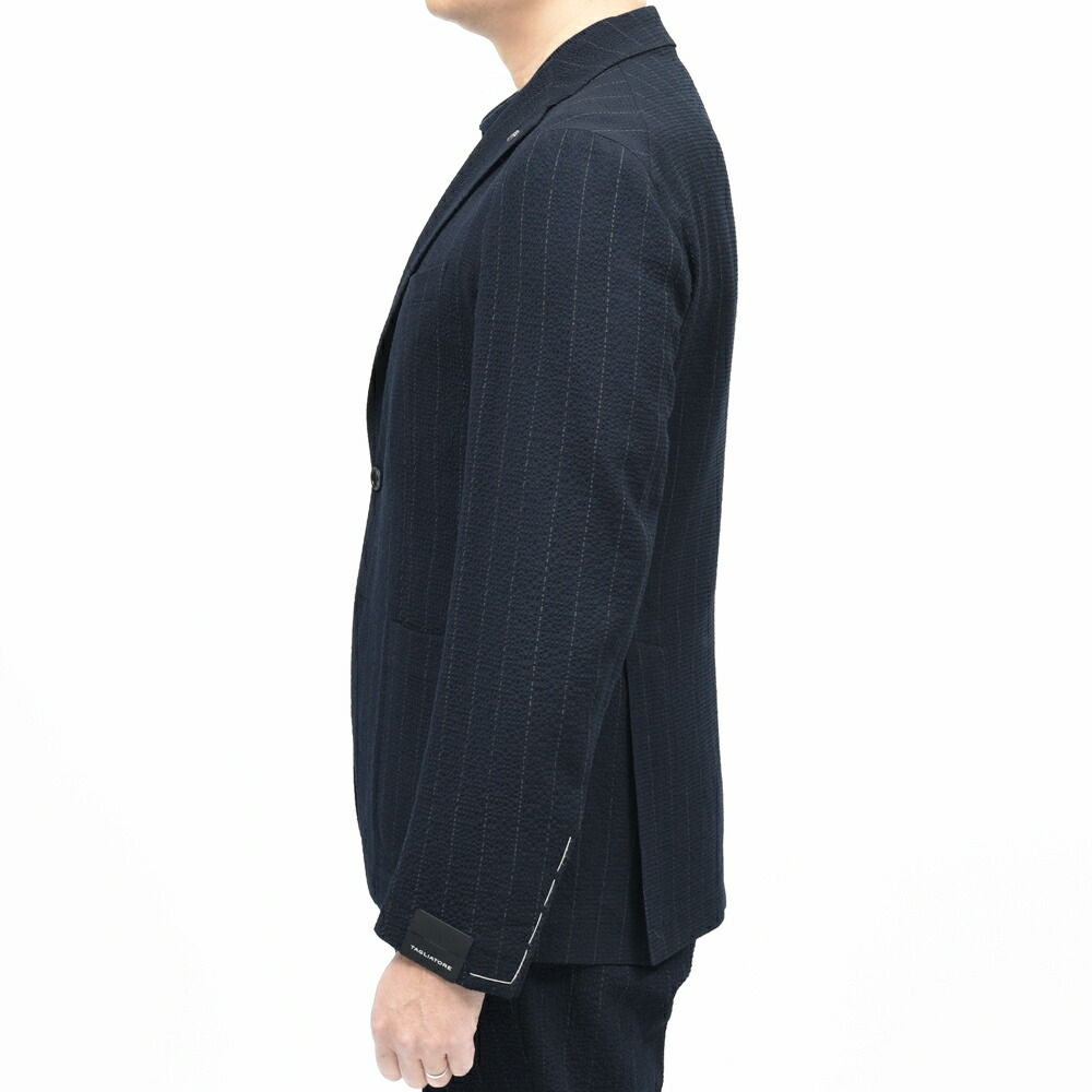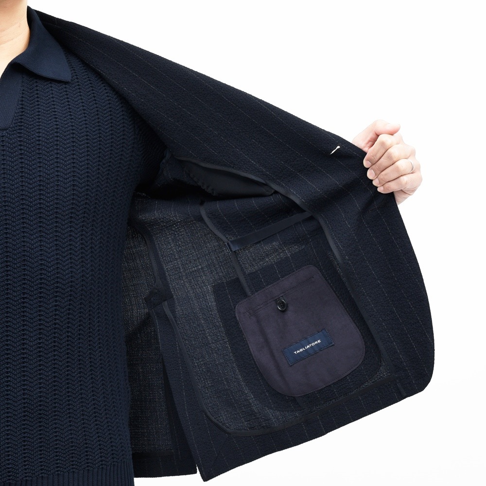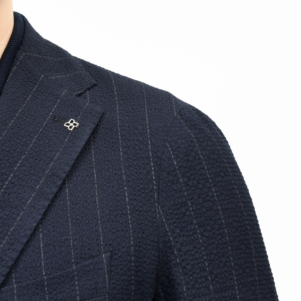 春夏シーズンの強い味方であるシアサッカーですが、ネイビーかつチョークストライプを採用していますので、そこまで軽やかな見え方にはなりません。通常であればもっと軽快にリゾート感のある色合いにする方がイタリアっぽい感じがしますが、そこはやはりTAGLIATOREがしっかりと日本の市場のことを考えているのかなと。 適度な主張がありつつもグイグイ前に出てくるタイプではないジャケット、とても良い塩梅です。 スタッフ 泉 |