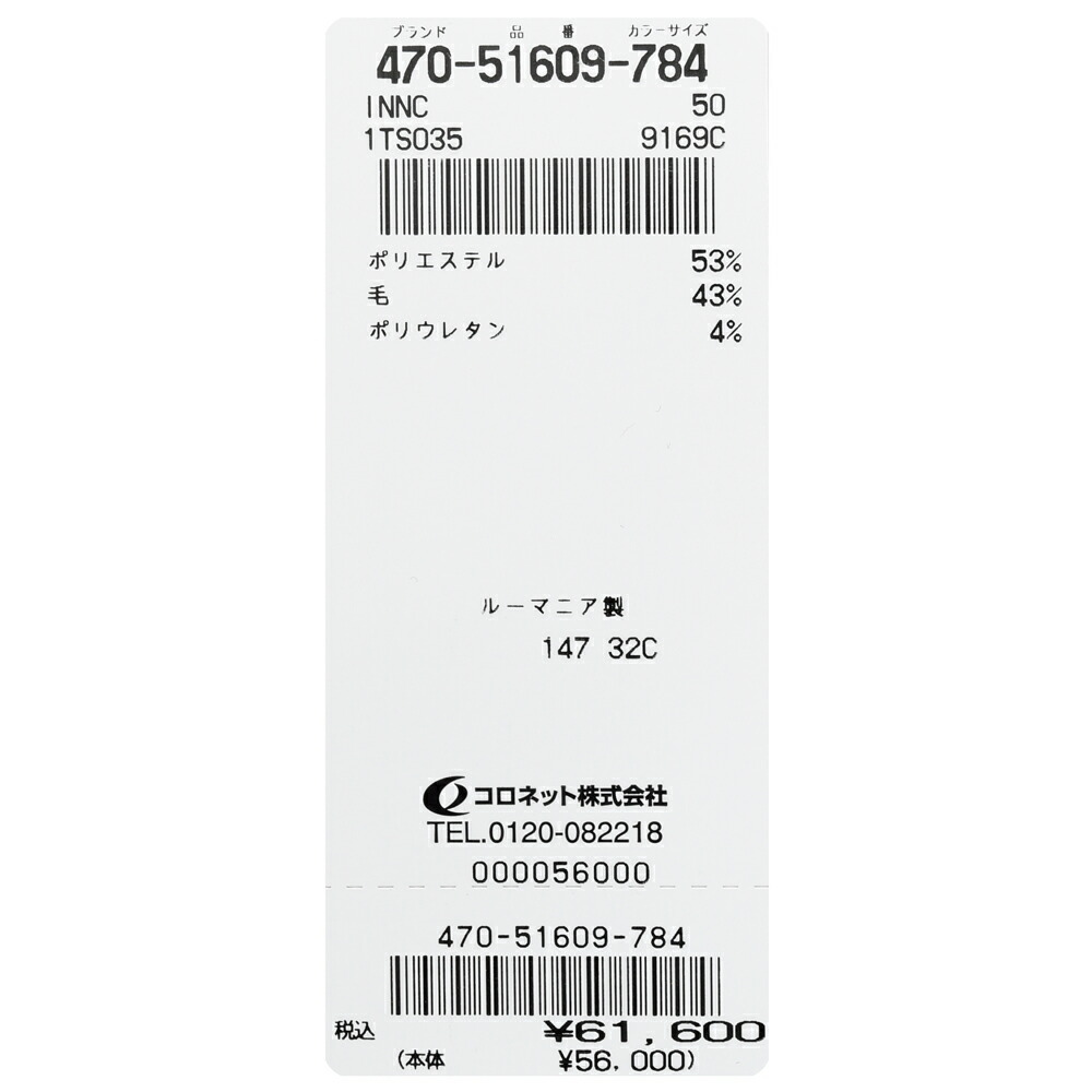: ポリエステル 53% ウール 43% ポリウレタン 4%