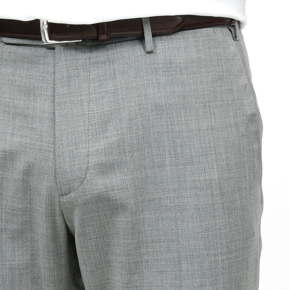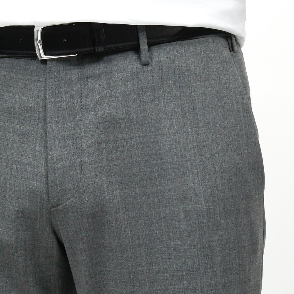 程よくタイトなフィット感で、ノープリーツ仕様により腰回りをすっきりと見せてくれます。