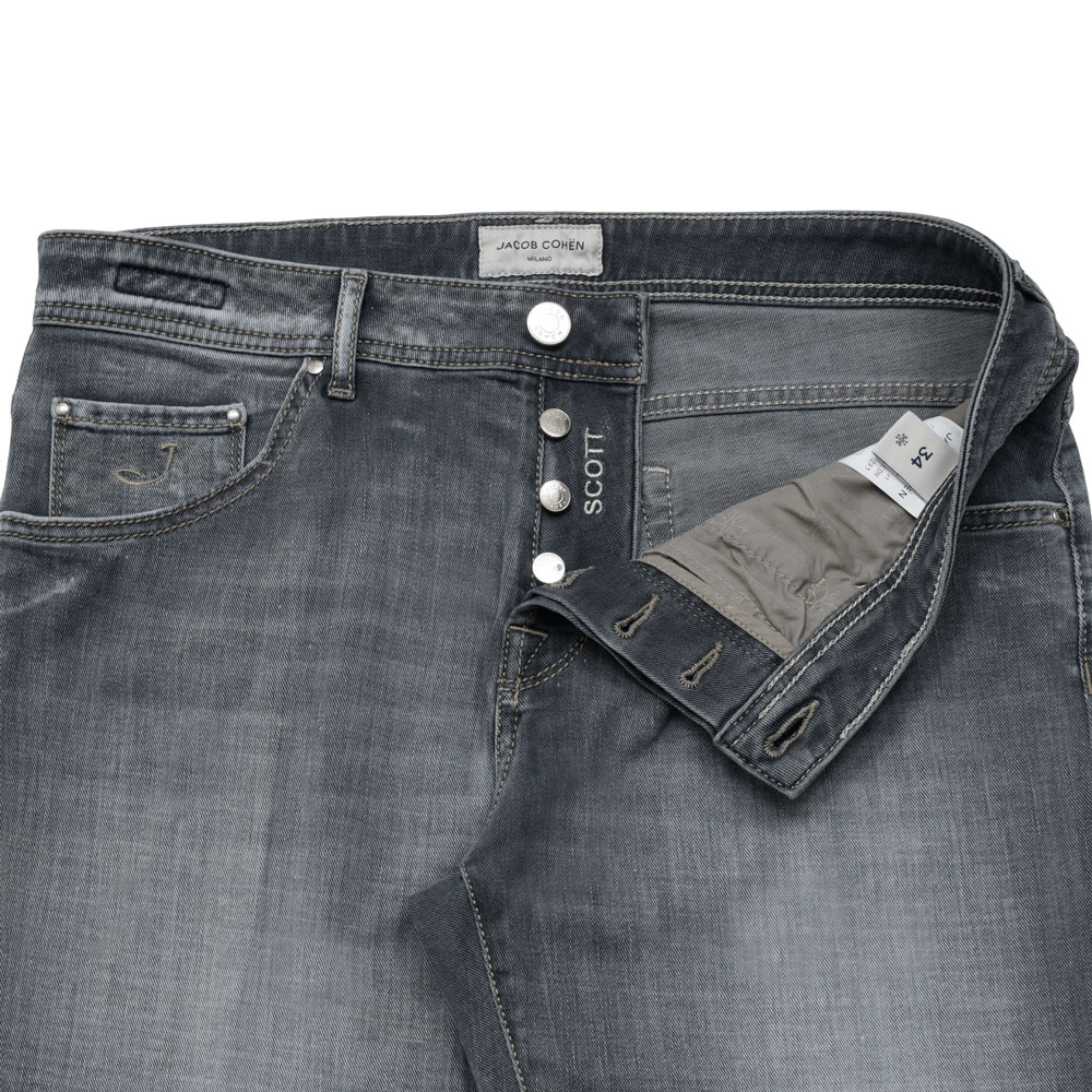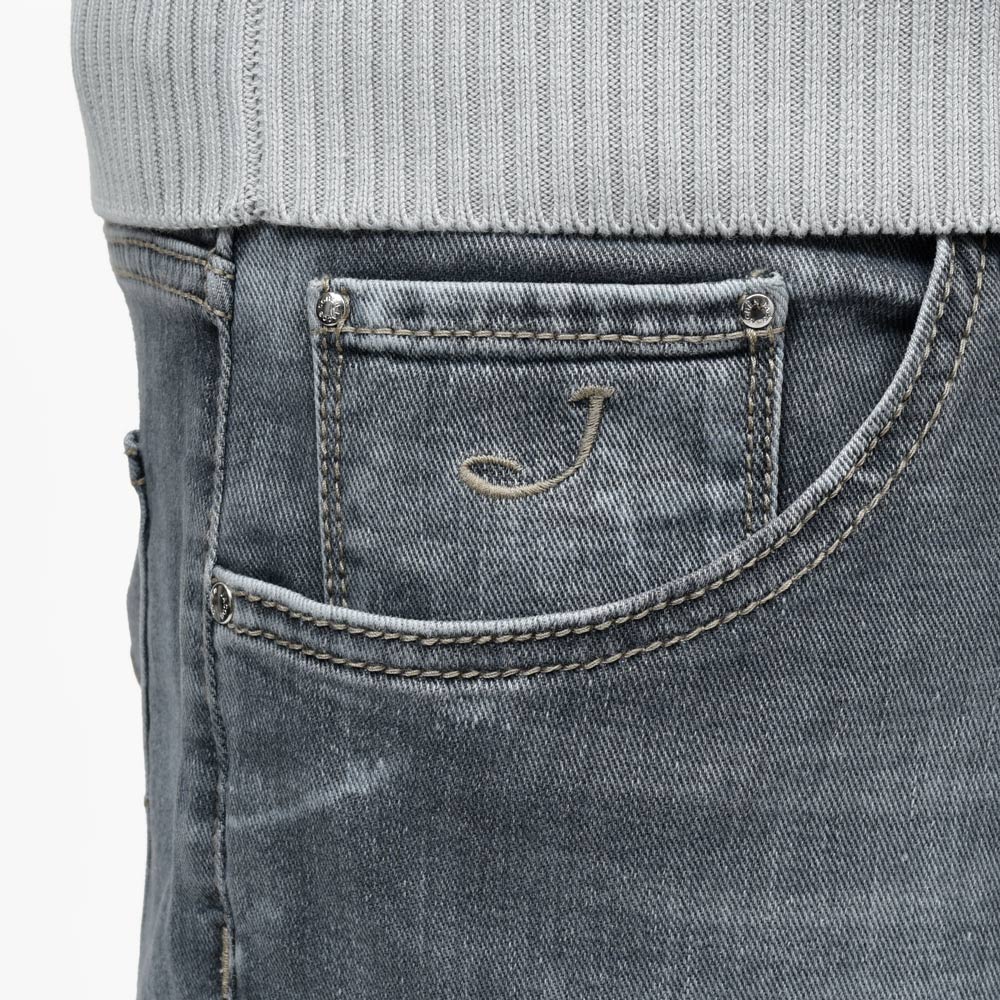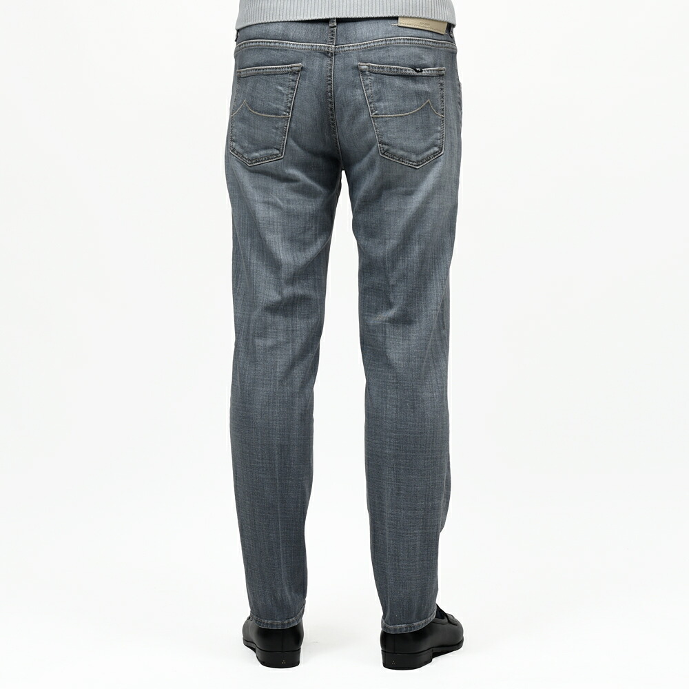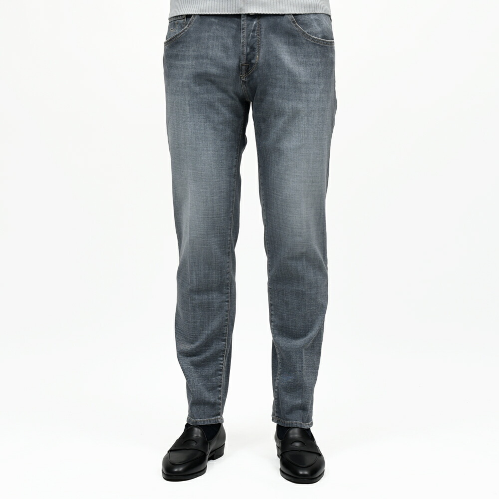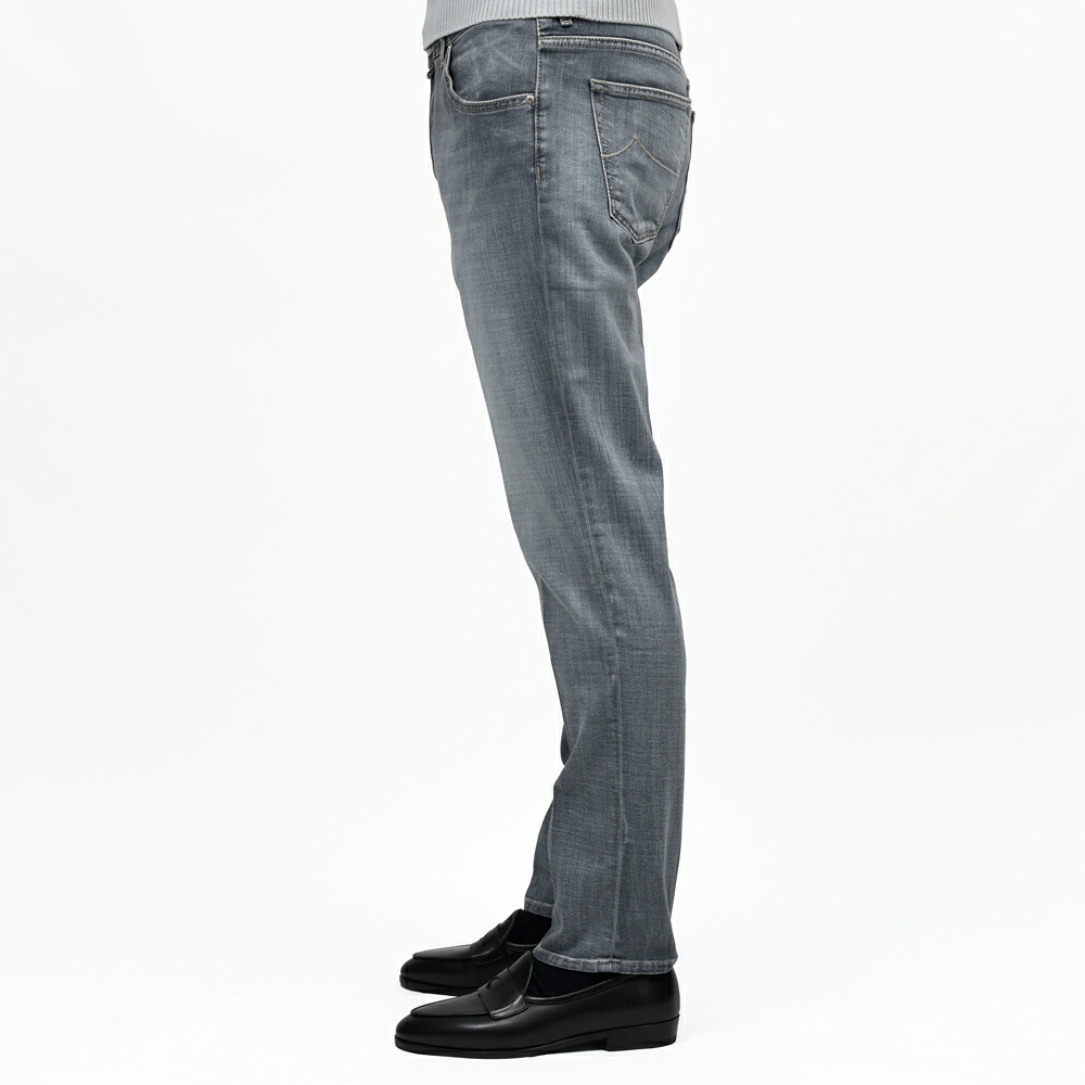 ほのかに青みが感じられるタイプのグレーデニムでして、こういったニュアンスの表現の幅が広いのもJACOB COHENらしいところですね。こういったフェード感の強い色味のタイプは特に春夏シーズンに重宝する感じでして、スタイルを軽快に魅せてくれる効果も期待できます。