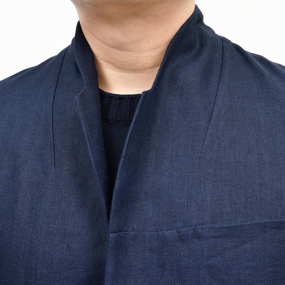 襟の感じやポケットのデザインなど、ある程度特徴はありますが実際に着用するとそこまで気にならず、それでいて他にはないムードを生み出すことができる、そんな存在です。