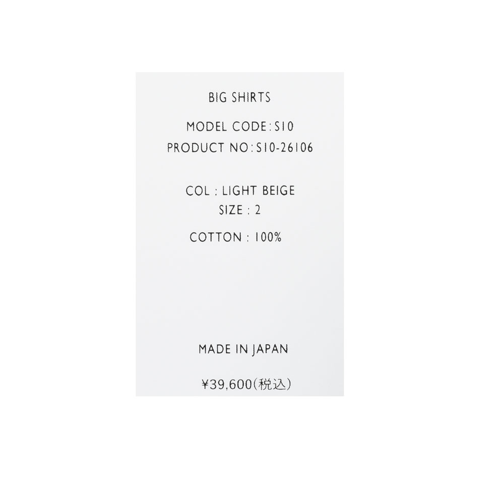 シルエットはBIG SHIRTというネーミングの通り、程よくゆとりを持って着用するタイプになります。肩をしっかりと落としつつ、襟はシャープにするなど、緩急がしっかり付いている為、ただただリラックス感を表現したものとは異なるということがご理解いただけるかと。