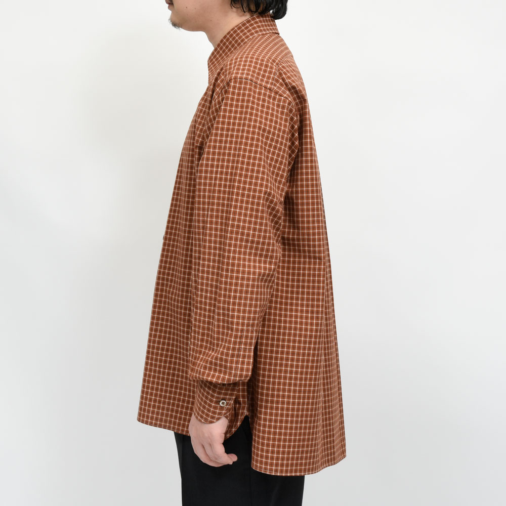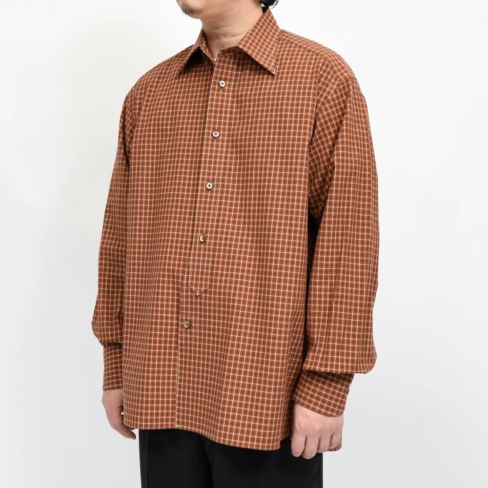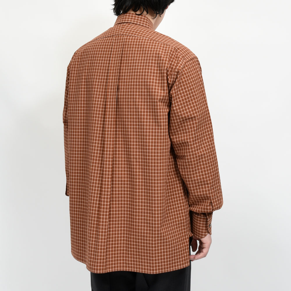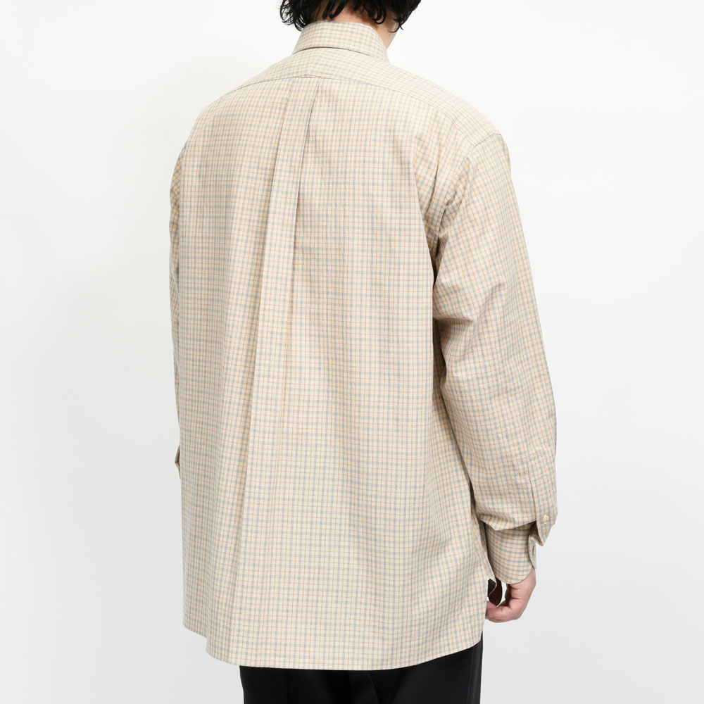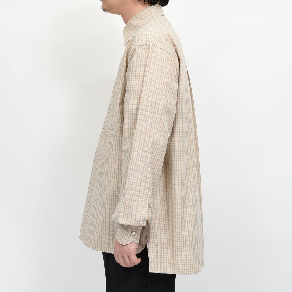 定番のBIG SHIRTですが毎シーズン生地を変更して展開しています。今回はチェックになっていまして、生地はしっかりしていますが色味とシルエットで柔和な雰囲気を表現した一着になっています。