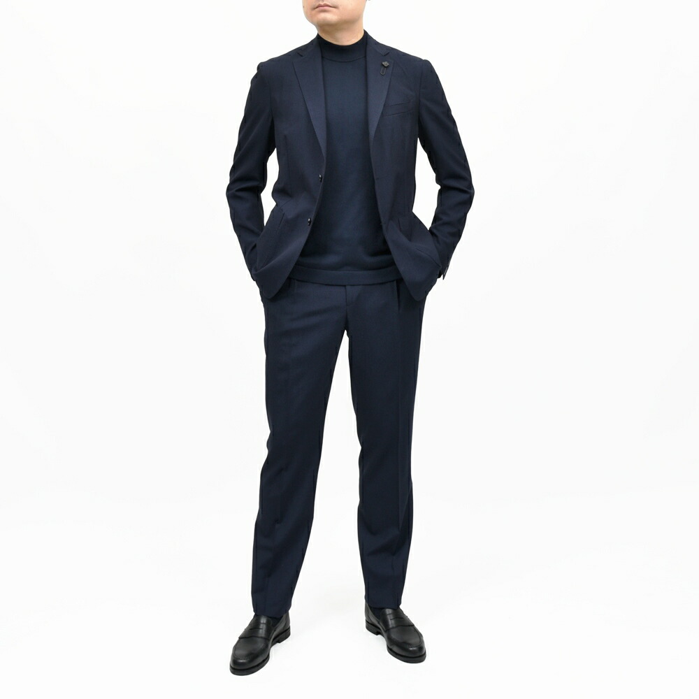 LARDINI(ラルディーニ)のEASY WEARイージーウェアコレクション、畳んで持ち運べるくらい軽くシワになりにくいという機能がありまして、ウール見えするテクニカル素材を中心に用いることでエレガンスとアクティブな機能性を併せ持つ仕上がりになっています。