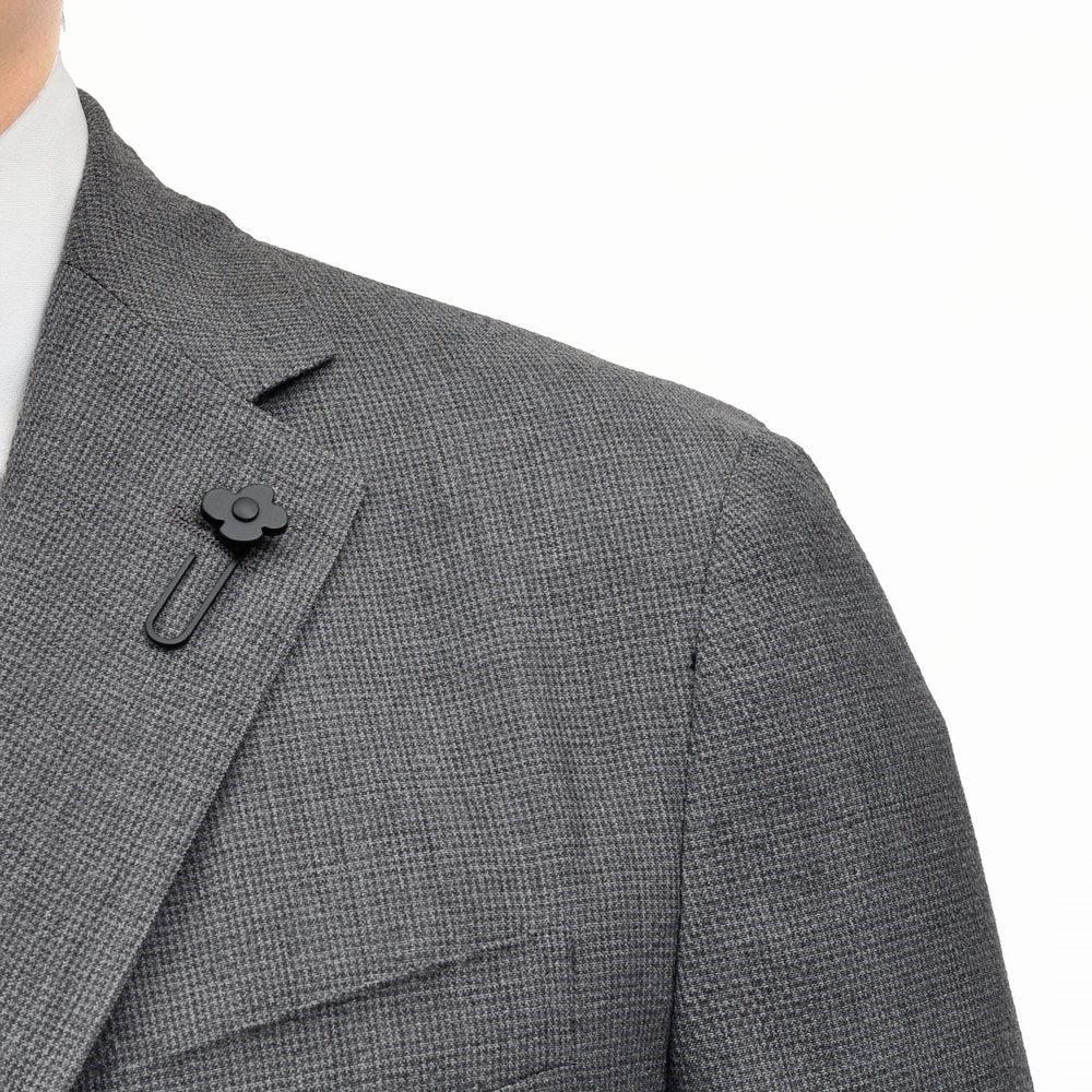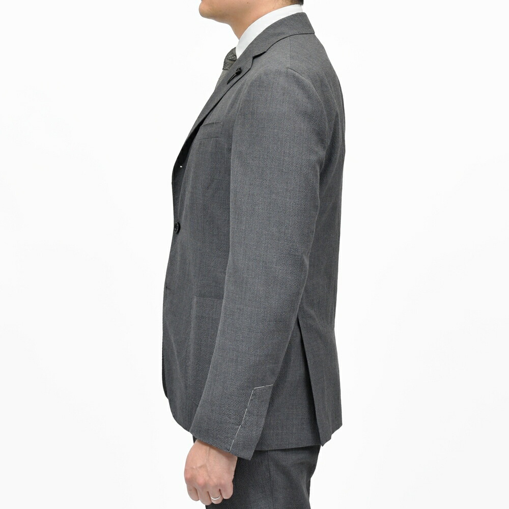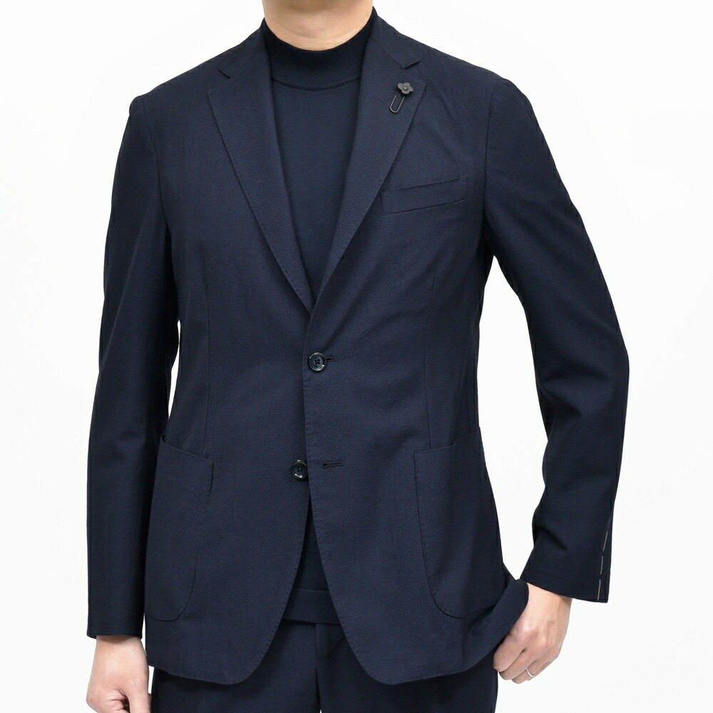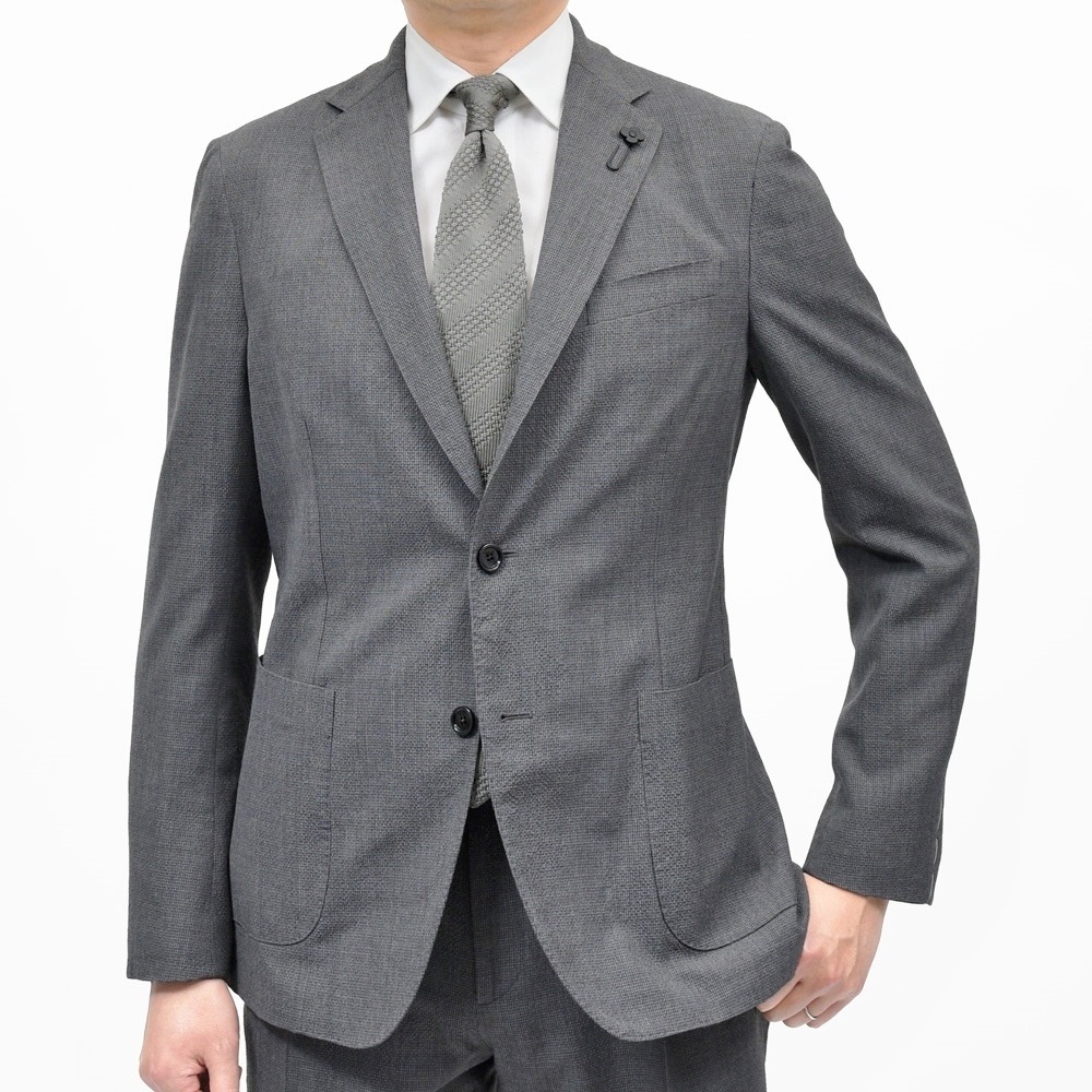 元々軽快で防皴性があり、天然のコンフォート性能を備えたシアサッカー組織をウールとポリウレタンで織り上げ、より機能的なクオリティに進化させたタイプなんですが、マイクロハウンドトゥース柄にすることでクラシカルな要素も加味されているLARDINIならではの一着ではないでしょうか。