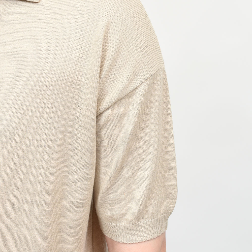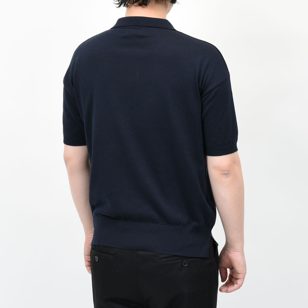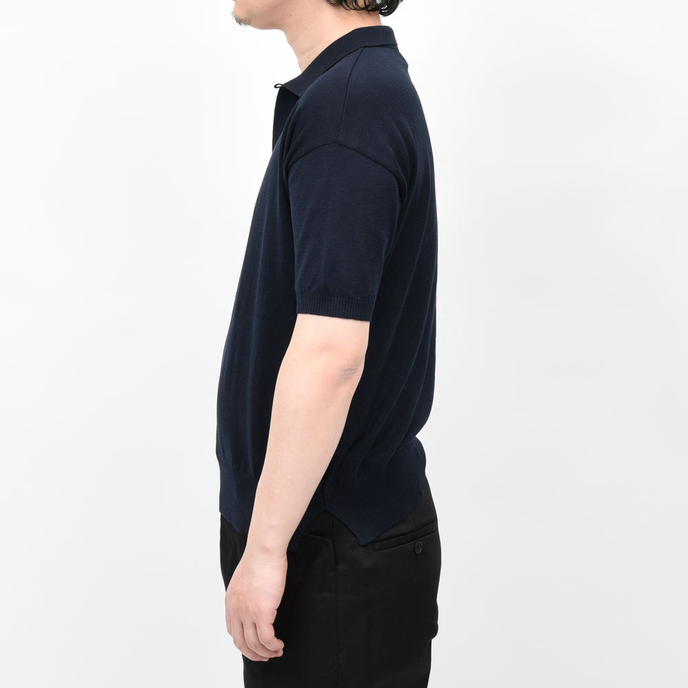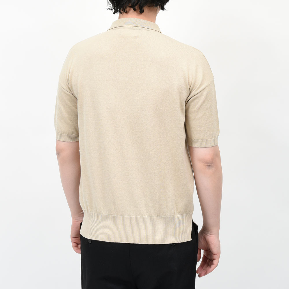 ma'ry'ya(マリア)のニットポロ、ボタンが付いていますがデザイン的などちらかというとスキッパー的なノリのタイプかと。いわゆるクラシックなタイプではなく、あくまでも同ブランドのフィルターを通して作られた一着となっています。