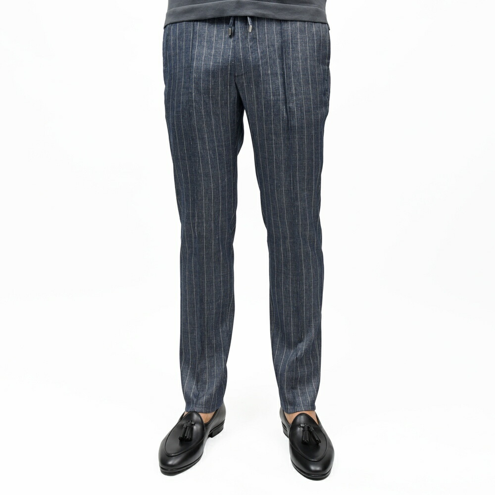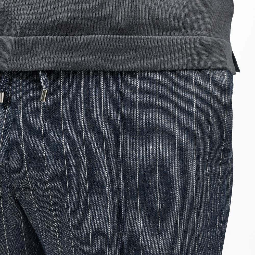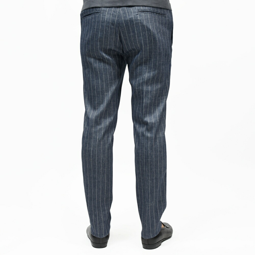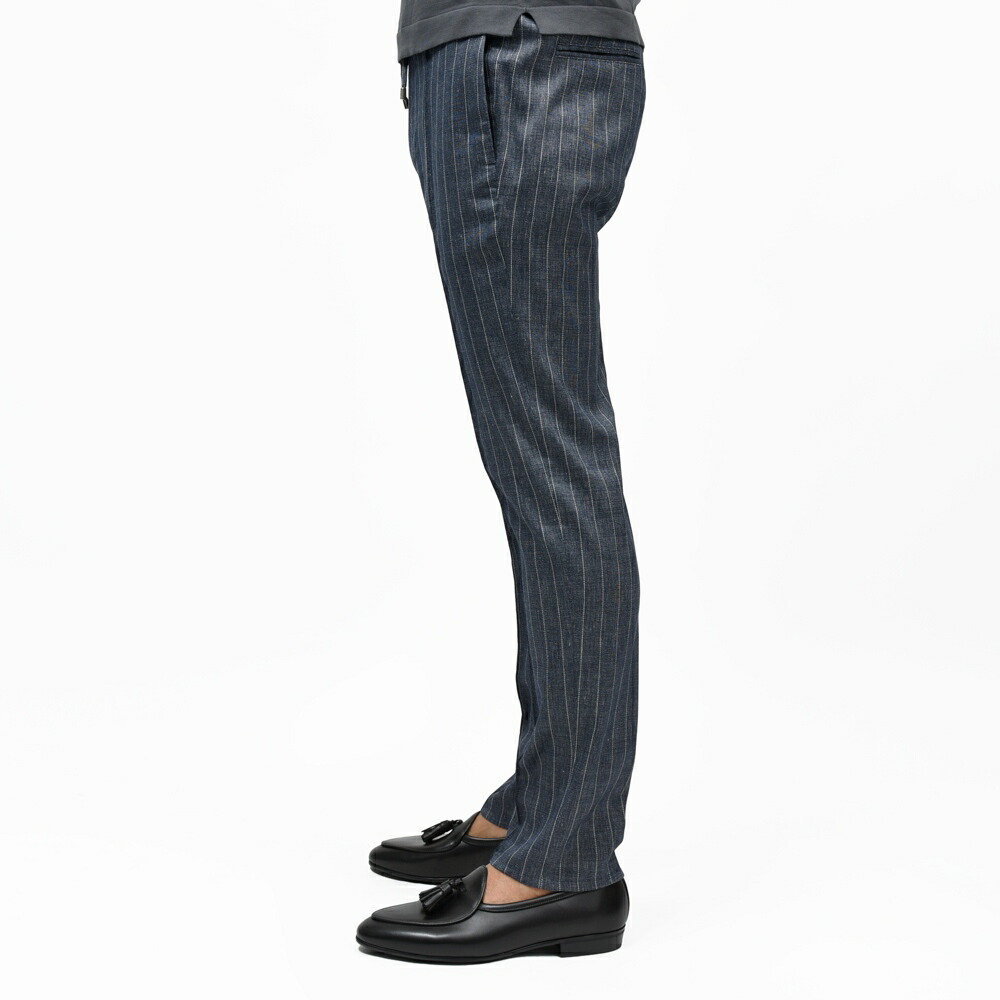 リネン調の清涼感あるタッチやスラブ感と、ストレッチの効いた穿き心地の良さ、イタリアらしい色気のある発色とストライプのバランスが秀逸で、ゴルフ場のみならずタウンユースでも使って頂きやすいモデルですね。