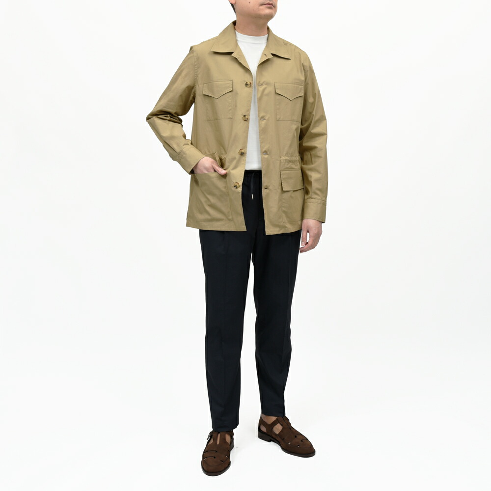 フラップ付きの4ポケットで、シャツの様に軽やかに着られる生地をセレクトしました。