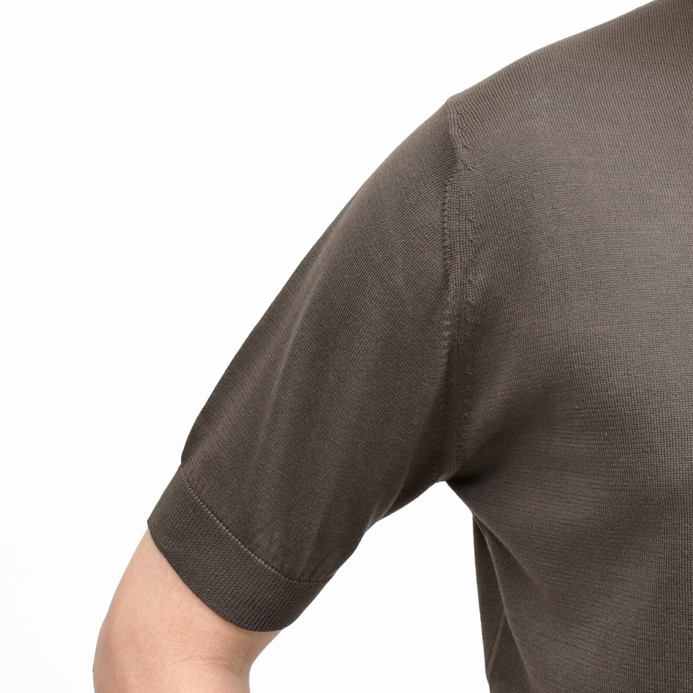 ニットポロの半袖タイプ、FILIPPO DE LAURENTIISの襟はやや地厚でしっかりしたコシ感のあるニットが用いられています。