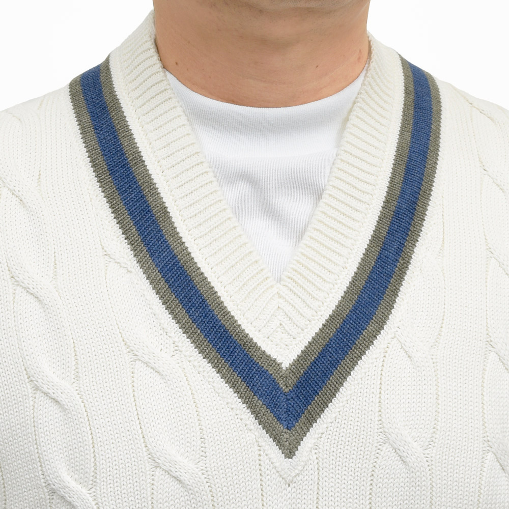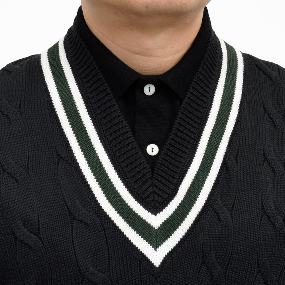 Alan Paine(アラン ペイン)のチルデンベスト、クラシカルな編地とネックラインの美しさが魅力でして、さすが老舗ニットブランドというクオリティです。