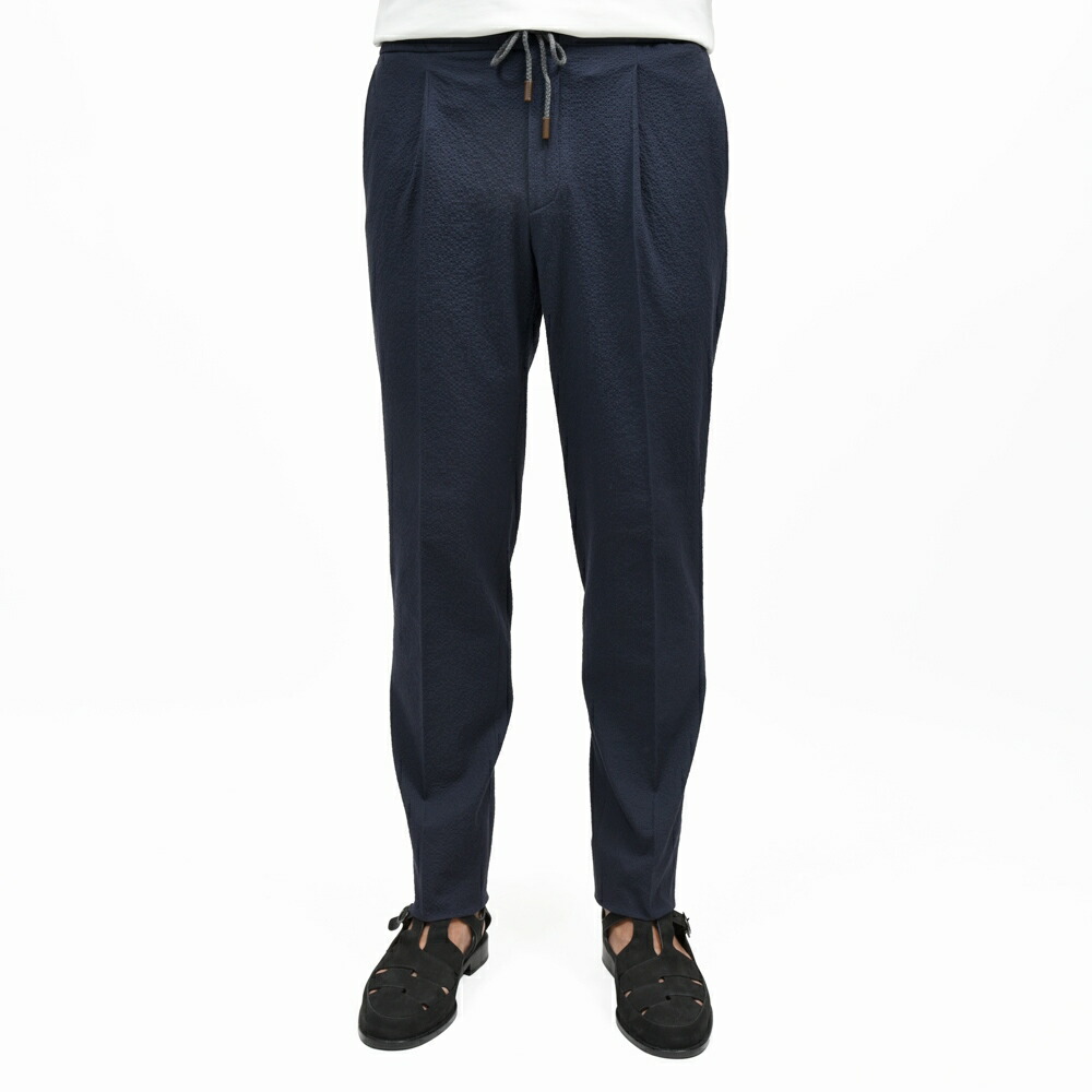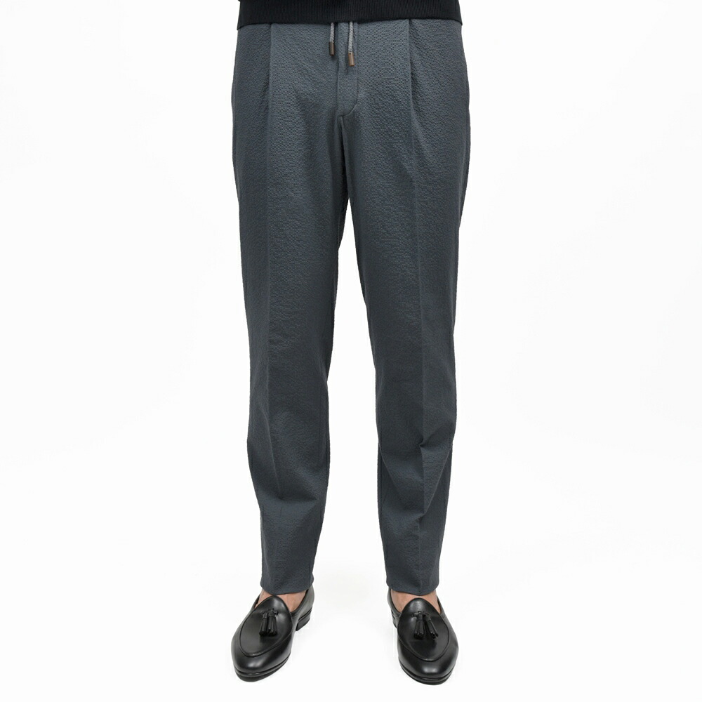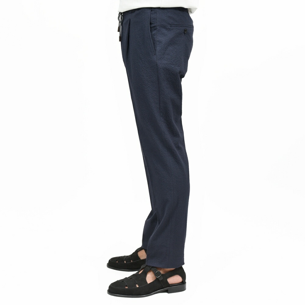 TAPERED FIT ストレッチコットンシルクシアサッカー1プリーツシャーリングパンツ 470-51534(M) 13065302052