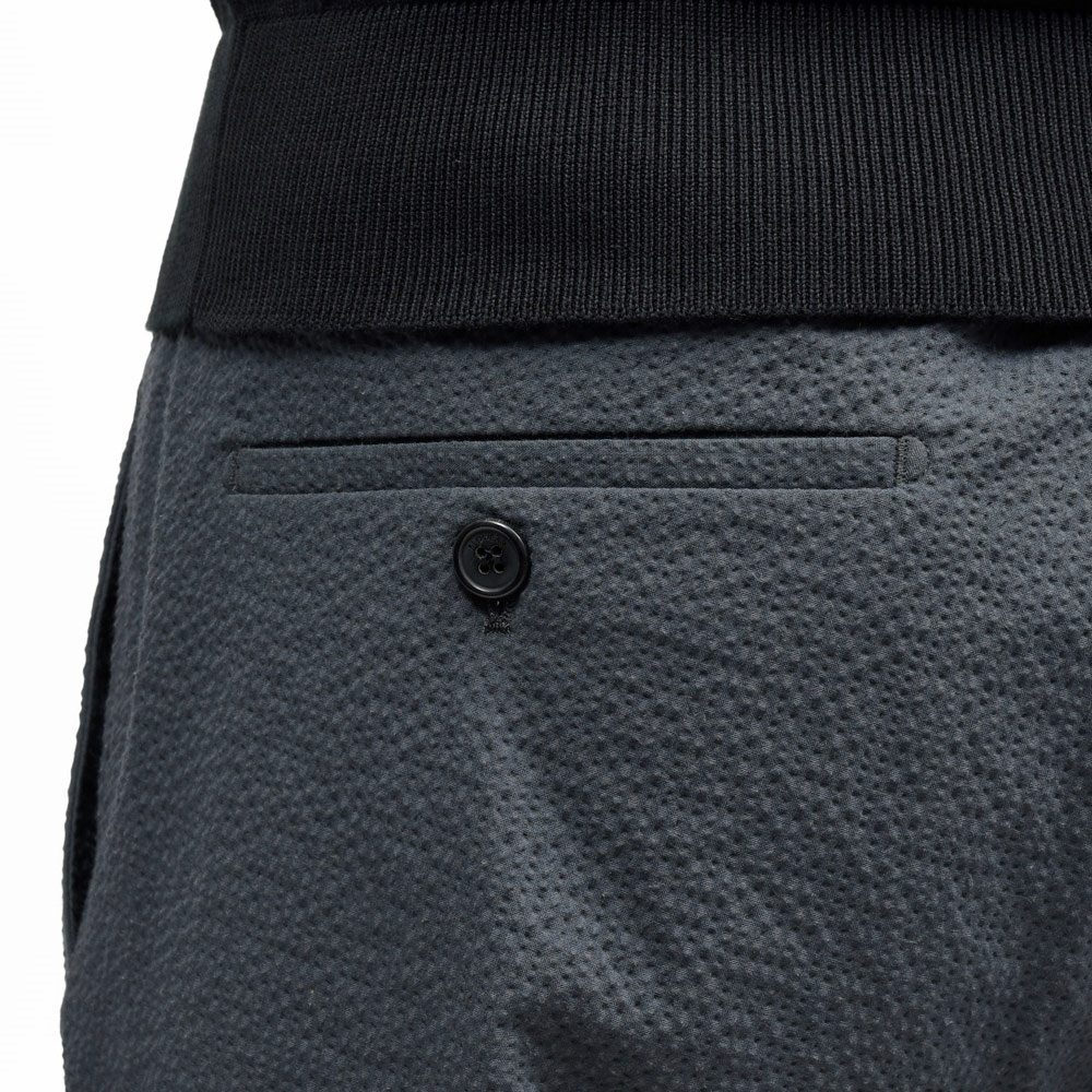 凹凸感が強く立体的で、程良いシャリ味がありながらストレッチの効いたコンフォートファブリックでして、単純なコットンストレッチタイプのシアサッカーに比べ上質で高級感のあるルックスになります。