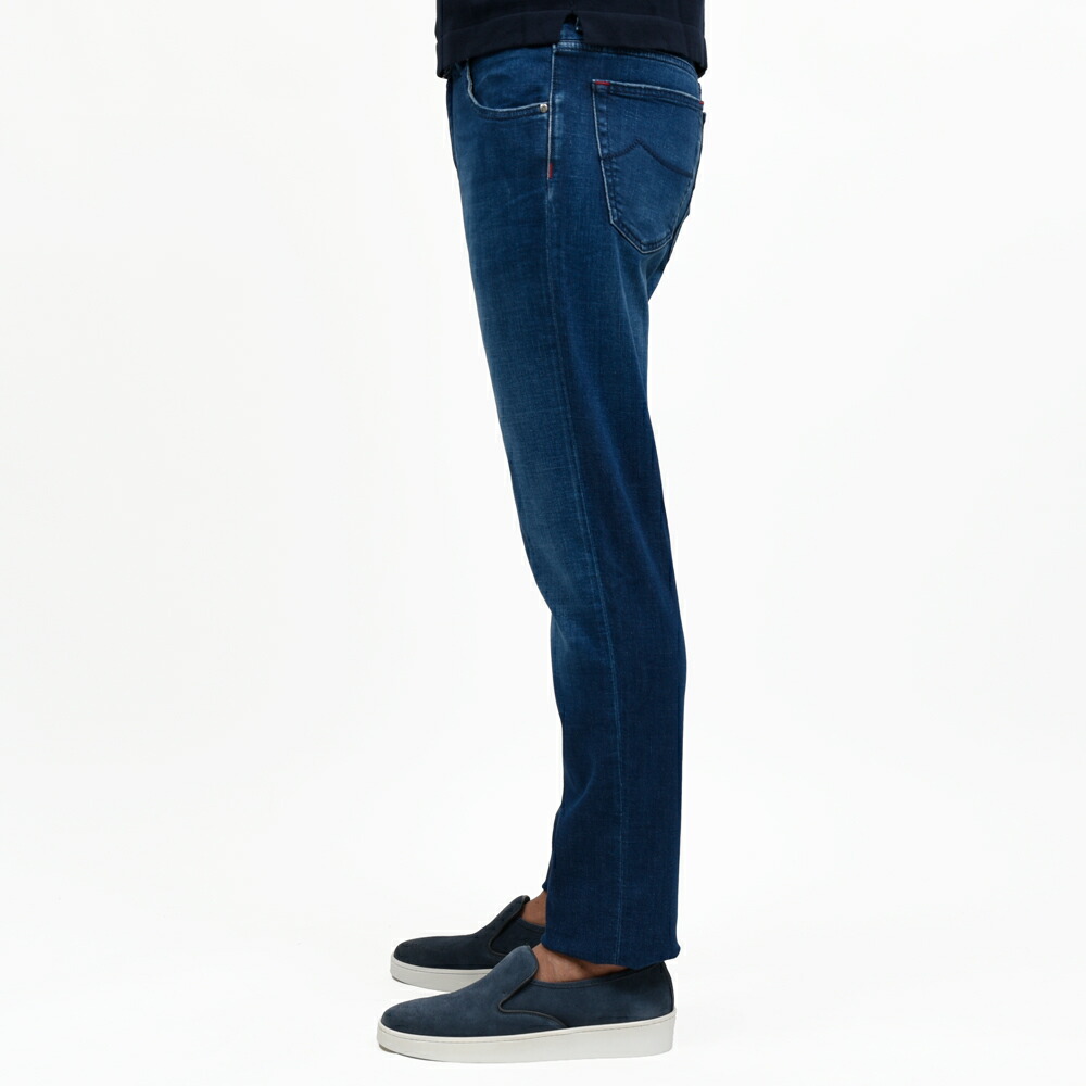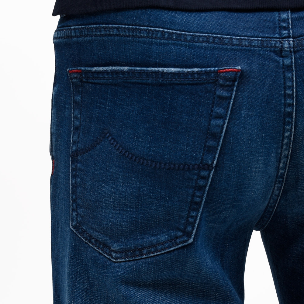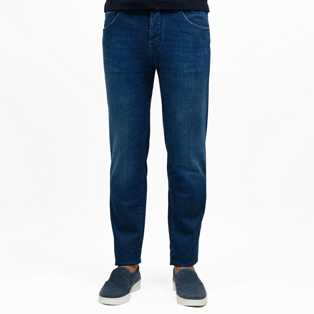 程よくこなれた表情が印象的なこちらはJACOB COHEN(ヤコブコーエン)の中でもバランスの良さが際立つ一本です。SCOTTらしいスリムクロップドのシルエットはすっきりとしたラインを描きながらも無理のないフィット感で、軽快な見え方に整えられています。