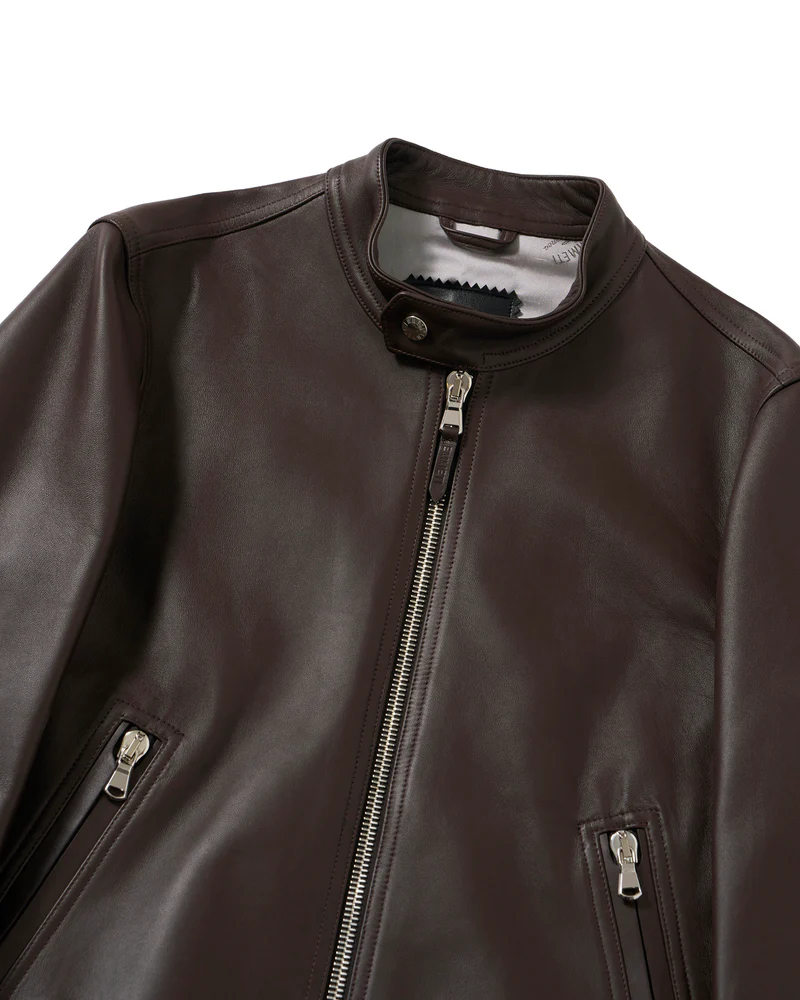 クラシカルなレザーライダースをスマートな印象に仕上げた同ブランドらしい一着となっています。
