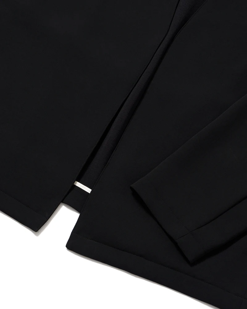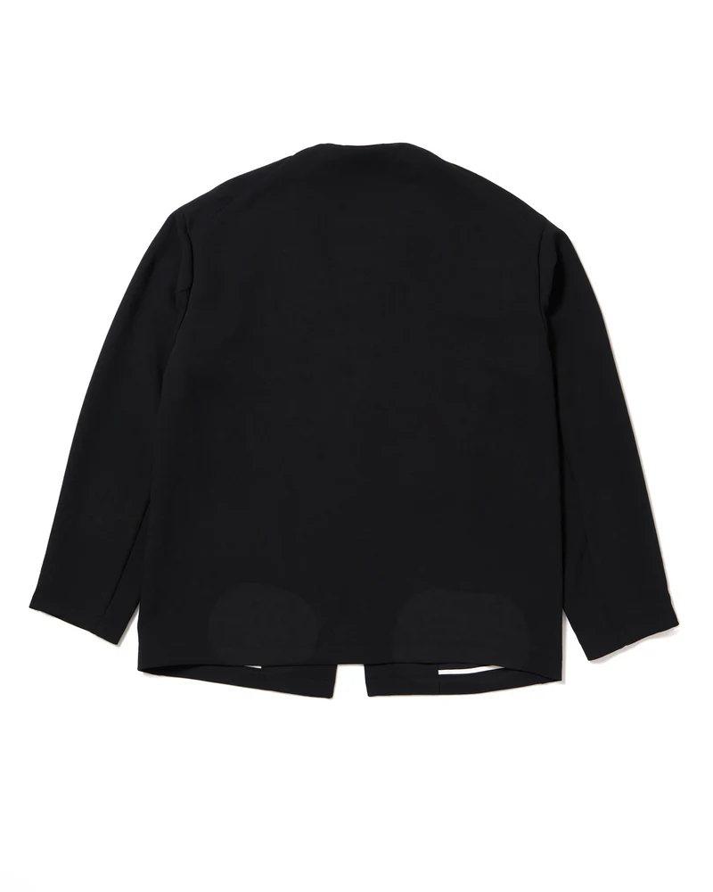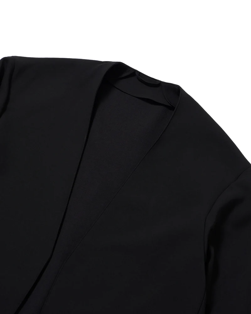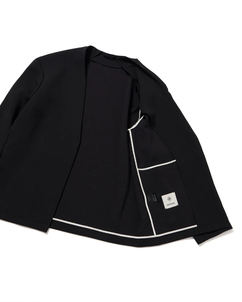 こちらは、テーラードジャケットをベースにボタンレス仕様へと落とし込んだ、ミニマルなデザインの一着。