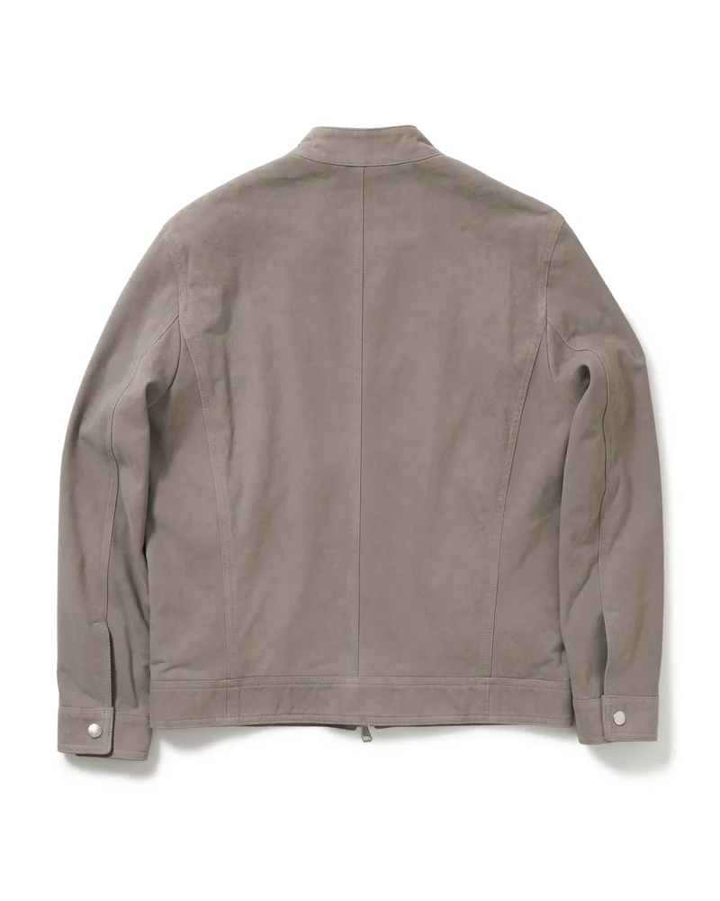 カラーは、柔らかな光を含んだサンドベージュ。単色でありながら奥行きを感じさせるニュアンスとなり、スエードらしい表情を楽しめる一着となっています。